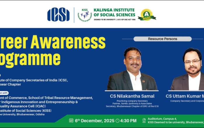 Kalinga Institute of Social Sciences (KISS) was founded by Prof. Achyuta Samanta in 1992-93 with only 125 poor tribal students. At present, the number of students educated through KISS has touched more than 30,000, out of which nearly seven thousand have gone in for higher education at KISS. This institution has been accorded the Deemed University status by the Ministry of Human Resource Development (HRD), Govt. of India on 25/08/2017. KISS has become the first University in the entire world exclusively for tribal students. The University has introduced seven new innovative areas in the first phase with the approval of UGC to provide impetus to research in tribal legal studies and tribal rights, tribal resource management, tribal culture and heritage, tribal languages, tribal medicine and tribal technology, Indic studies etc. Students get residential education free of cost.