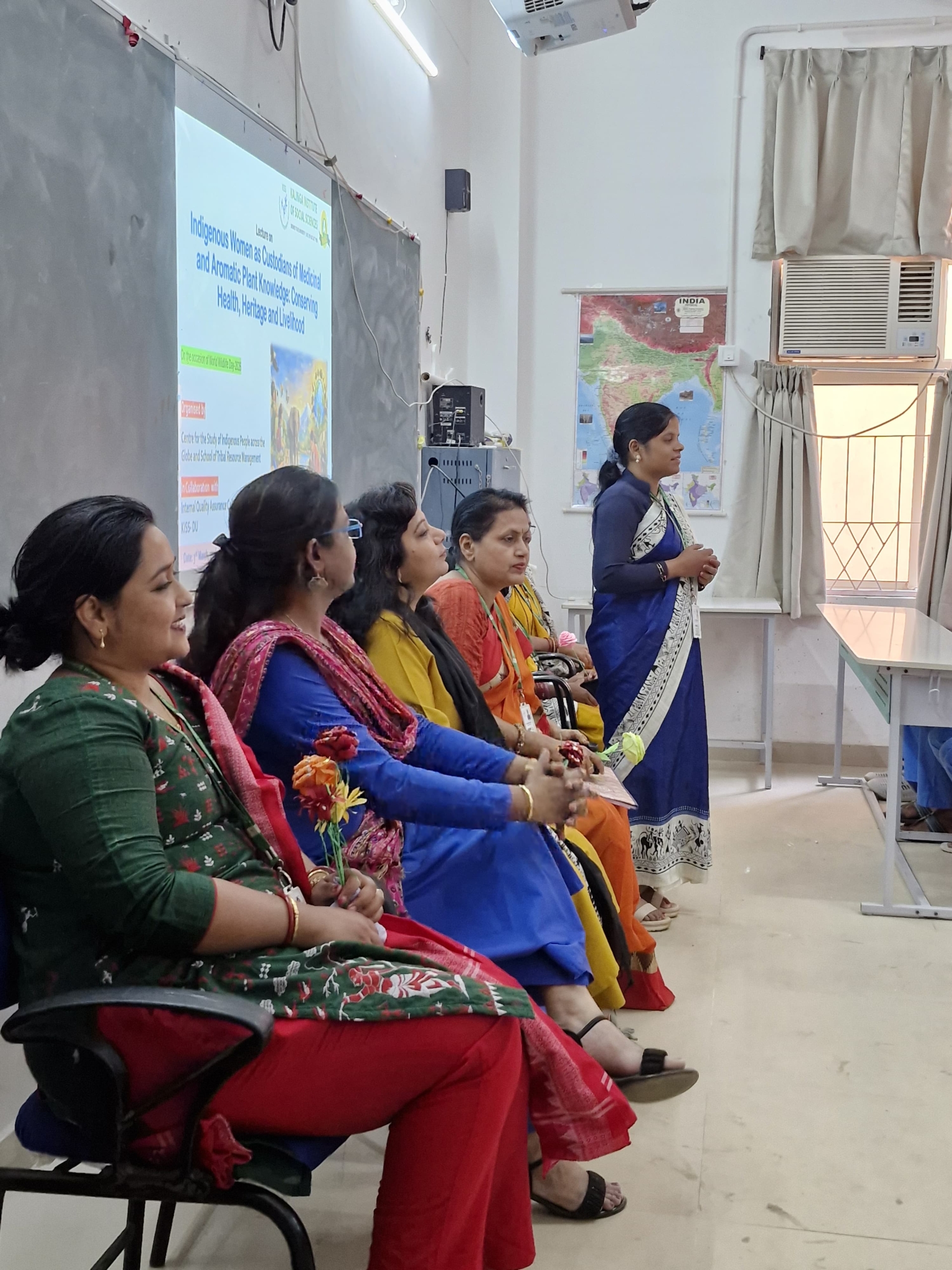 Dr. Laxmi Priya Mallick, Assistant Professor, spoke on Indigenous livelihoods derived from medicinal plants. She explained how traditional knowledge of plant resources contributes not only to healthcare but also to economic empowerment, especially among indigenous women. She highlighted the role of community-based enterprises and sustainable harvesting practices in strengthening rural economies. Dr. Jaminee Jhankar, Assistant Professor discussed aromatic plants and shared her experiences at KISS-DU. She provided valuable insights into the cultivation, processing, and value addition of aromatic plants, stressing their growing demand in the pharmaceutical and cosmetic industries. She also highlighted opportunities for skill development and entrepreneurship among tribal women. Dr. Hemlata Chalk, Assistant Professor, delivered an engaging talk on indigenous knowledge systems, emphasizing their cultural and ecological significance. She spoke about the oral traditions through which medicinal plant knowledge is transmitted across generations and the urgent need to preserve such knowledge in the face of modernization and environmental challenges.