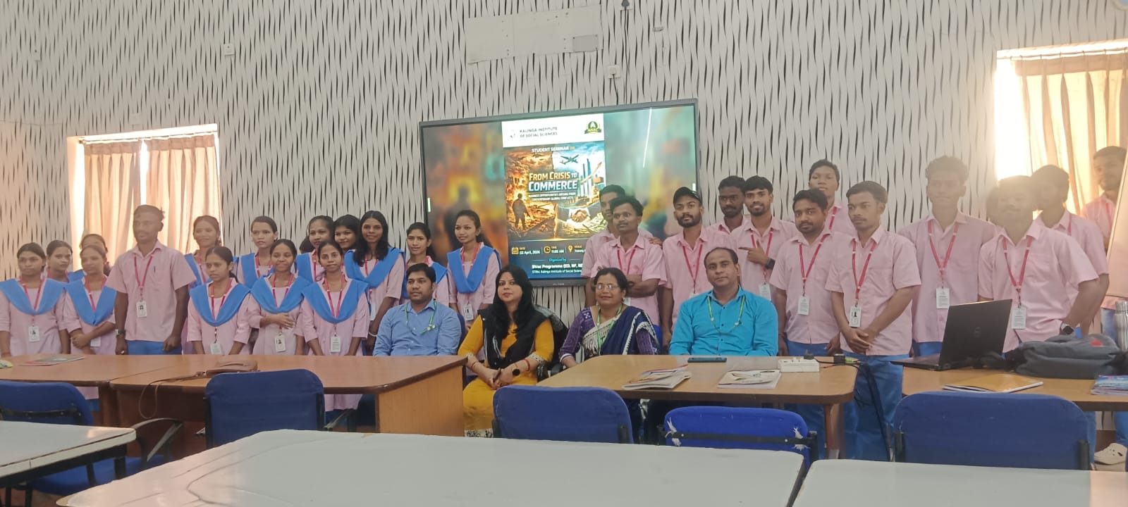 The Department of Bachelor in Vocational Studies, School of Tribal Resource Management (STRM), KISS-DU organized a student seminar titled “From Crisis to Commerce: Business Opportunities Arising from Contemporary Global Conflicts” on 2nd April 2026. It concluded on a highly engaging and insightful note. The session comprehensively explored various factors and emerging opportunities shaped by global conflicts, providing students with a deeper understanding of real-world economic and business dynamics.