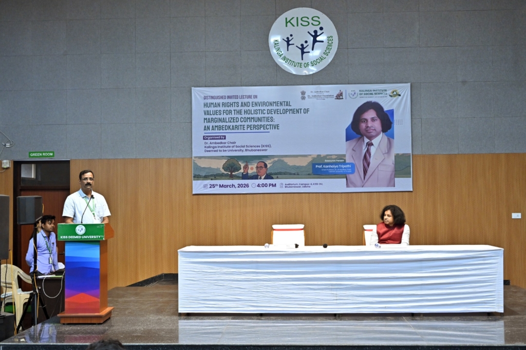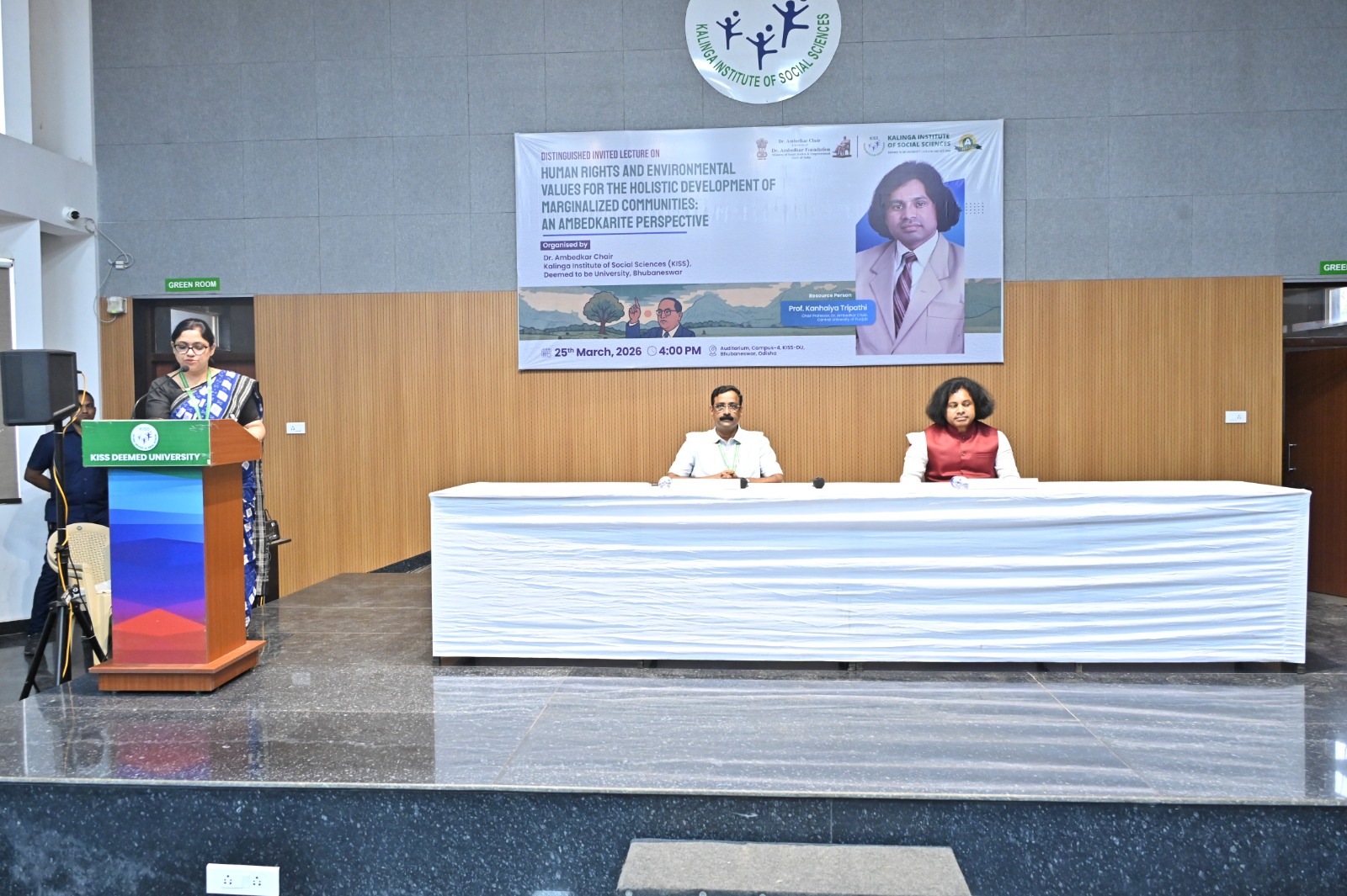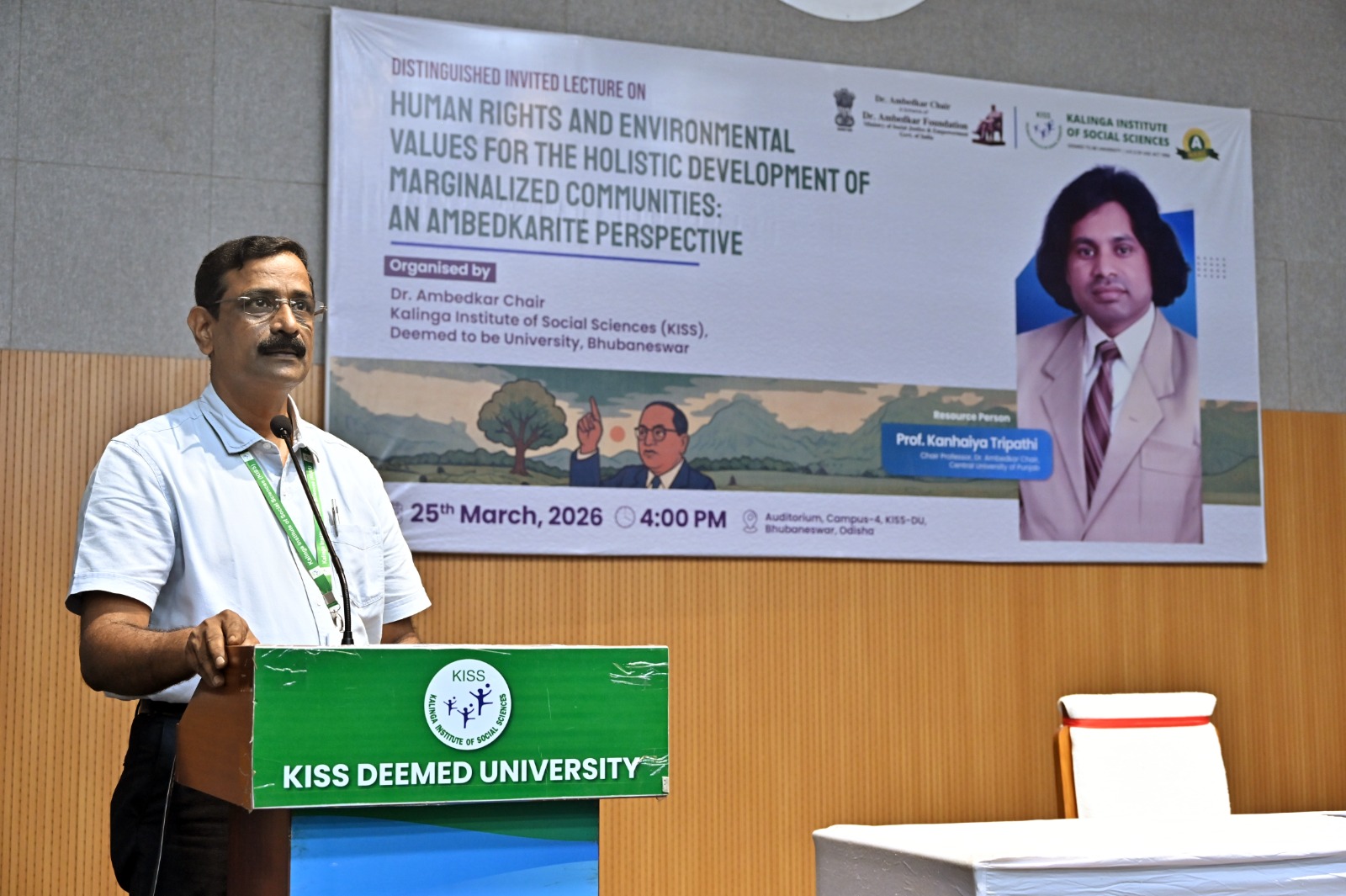 The Dr. Ambedkar Chair at Kalinga Institute of Social Sciences (KISS) Deemed to be University successfully organized a Distinguished Lecture on “Human Rights and Environmental Values for the Holistic Development of Marginalised Communities: An Ambedkarite Perspective” on 25th March 2026 at the University Auditorium, Campus-4.