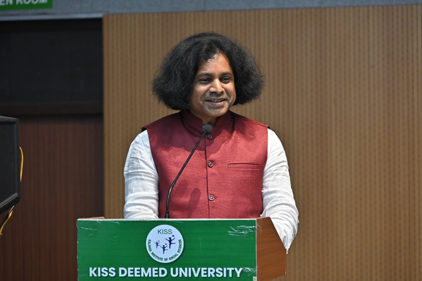 Earlier, Dr. Chittaranjan Bhoi, Chair Professor, Dr. Ambedkar Chair, KISS-DU delivered the welcome address. He introduced the distinguished speaker and aptly set the tone for the lecture by emphasizing the contemporary relevance of Ambedkarite thought. He also highlighted how the visionary Founder of KIIT and KISS, Prof. (Dr.) Achyuta Samanta has translated Dr. B. R. Ambedkar’s philosophy into meaningful action through the inclusive and transformative educational model of KISS. He highlighted that KISS stands today as a living embodiment of Ambedkar’s ideals empowering marginalized communities through education, dignity and opportunity.