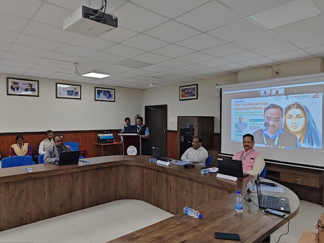 The celebration of the 194th Rashtramata Savitribai Phule Jayanti was initiated by the lightning of the lamp and paying floral tribute to Rashtramata Savitribai Phule and Mahatma Jyotiba Phule. A distinguished invited lecture was organised by Dr. Ambedkar, Chair at Conference Hall – 1, KISS-DU. The distinguished speaker – Prof. Nagaraju Gundemeda (HoD Sociology, University of Hyderabad) delivered the lecture. The invited lecture was attended by the Hon’ble Vice-Chancellor, Esteemed Registrar, Chair Professors, Deans, Faculties, Research Scholars and PG students of Social Sciences and Humanities. The Registrar, KISS-DU, Dr. Prashanta Kumar Routray, gave the welcome address by associating the vision of our Hon’ble Founder Sir, Prof. Achyuta Samanta, with the ideology put forward by Mahatma Jyotiba Phule and Rashtramata Savitribai Phule, and the Vice-Chancellor, KISS-DU, Prof. Deepak Kumar Behera, gave an introductory speech to the invited lecture by showcasing Rashtramata Savitribai’s literary side which marked the initiation of the invited talk. The Editor, DAF, had sent a formal message for this occasion, which was read out by Dr. Ambedkar Chair Professor, Sthabir Khora. Dr. Ambedkar Chair Assistant Professor, Shri Satyaki Pal, introduced the speaker to the audience by sharing the achievements of the distinguished speaker.