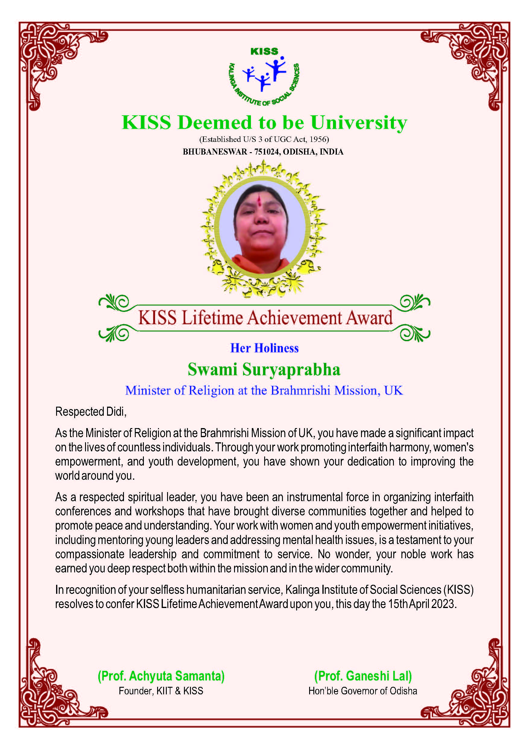 Her Holiness Swami Suryaprabha, Minister of Religion at Brahmrishi Mission, UK