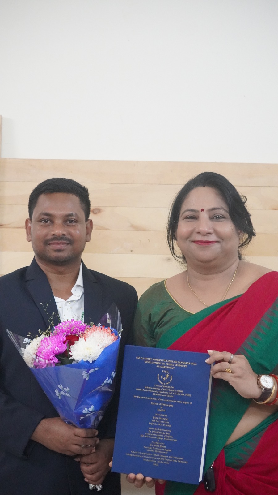 Jitray Marandi, a research scholar from Mayurbhanj district, has completed his Ph.D. on his topic “Use of Short Stories for English Language Skill Development of Tribal Students: An Assessment,” under the joint supervision of Dr. Preetinanda Roy, Assistant Professor at B.J.B Autonomous College and Dr. Disha Bhatt, Assistant Professor at the School of Comparative Tribal Languages and Literatures, KISS-DU, Bhubaneswar.