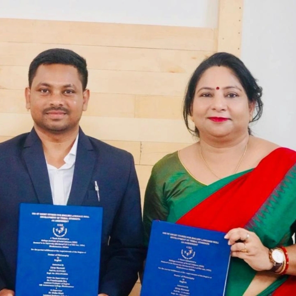 Reflecting on his journey and experiences, Dr. Marandi said: “I am deeply thankful to my Supervisor, Dr. Preetinanda Roy and Co-supervisor Dr. Disha Bhatt. I express my deep gratitude to Dr. Chittaranjan Bhoi, Dean, SCTLL. My sincere appreciation also goes to Dr. Chittaranjan Bhoi, Dean, SCTLL and Dr. Ratnaprava Parij, HoD, English. I would also like to acknowledge with gratitude the faculty members of the Department of English, who have always been like a family to me. My sincere thanks also go to the School of Comparative Tribal Languages and Literatures (SCTLL), Lastly, I humbly express my deepest gratitude to the Hon’ble Founder of KISS and KIIT, Dr. Achyuta Samanta, for providing me with the invaluable opportunity to pursue my research at KISS Deemed to be University. What I am today is because of him”.