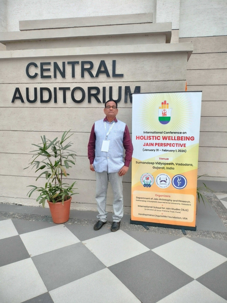 Dr. Malaya Bhoi, Assistant Professor, Department of Philosophy, School of Tribal Culture, Philosophy and Eco Spiritualism, KISS-DU presented a research paper titled “Jain Philosophy and Interfaith Dialogue for Global Peace and Coexistence” at an international conference on Holistic Well-Being: A Jain Perspective from 31st January 2025 to 1st February 2026. The conference was organised by Sumandeep Vidyapeeth Deemed to be University, Vadodara, Gujarat, in collaboration with the International School of Jain Studies, Pune, and the Vardhamana Charitable Foundation, USA. Scholars and experts in the fields of Jain Philosophy, Jainology, and other allied disciplines from across the globe participated in this academic event.