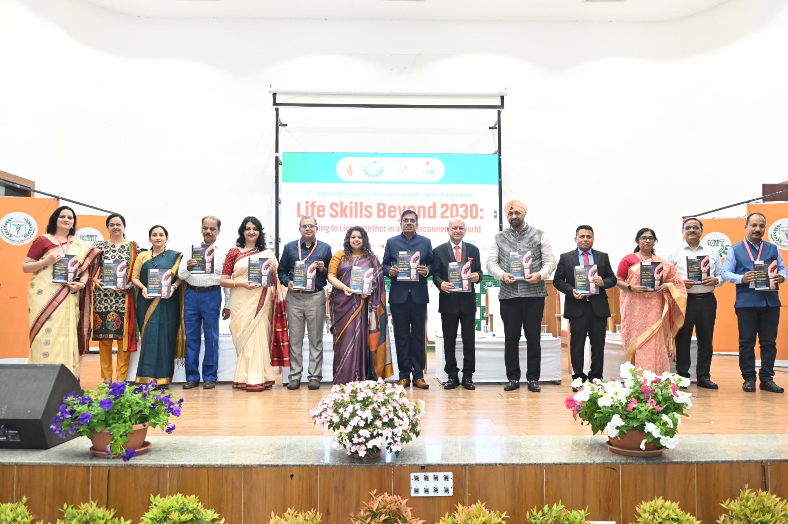 During the proceedings, Dr. A. Radhakrishnan Nair conferred the IALSE – Life Time Achievement Award upon Dr. Urvi Nagabhushana Rao, IPS (Retd.), recognising his contributions to the growth of life skills education. The IALSE–Urvi Vikram Best PG Thesis Award in Life Skills Education was presented to Ms. Sivakami. S, MA Counselling Psychology, NET, MSSW, Chennai. The session also featured the release of the conference Book of Abstracts.