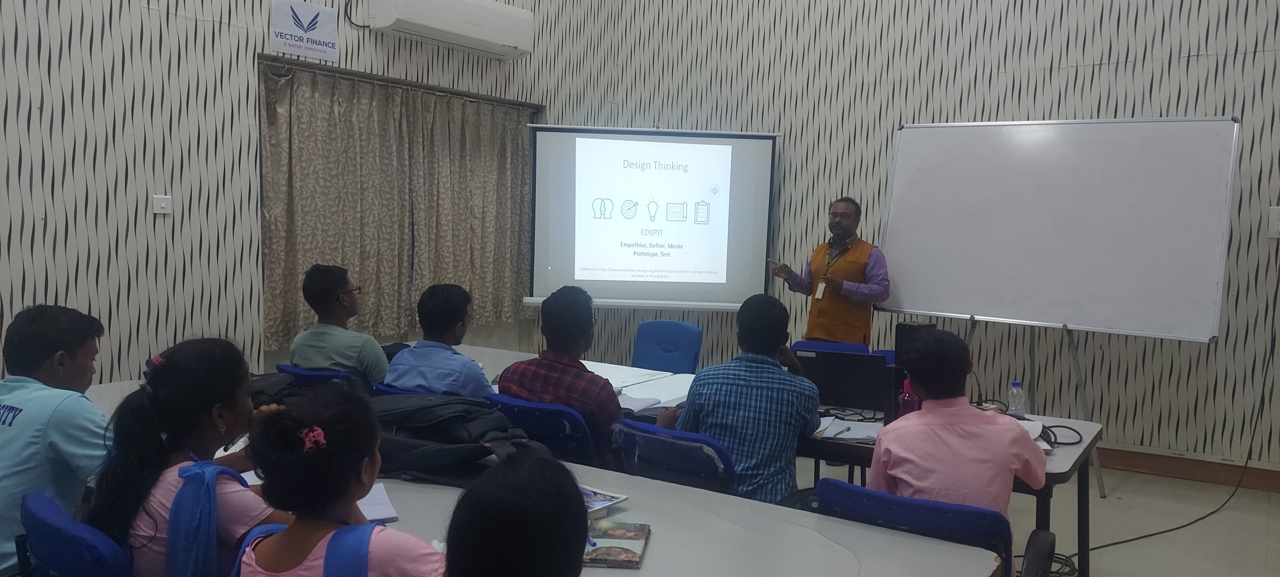 Dr. Basu elucidated the core principles of Design Thinking, laying emphasis on customer- and human-centricity in problem-solving. Participants gained insights into empathizing with end-users, identifying customer or stakeholder ouch-points, defining problems accurately, ideating innovative solutions, prototyping them, and testing for efficacy. Critical Thinking was also highlighted as an essential skill, enabling participants to analyze situations rigorously, identify biases, and make informed decisions, taking into consideration possible factors that may play a role in the execution of the idea. The session on Innovation Design stressed the integration of design principles and agile execution into the innovation process to create user-centric, attractive, and commercially viable solutions.
