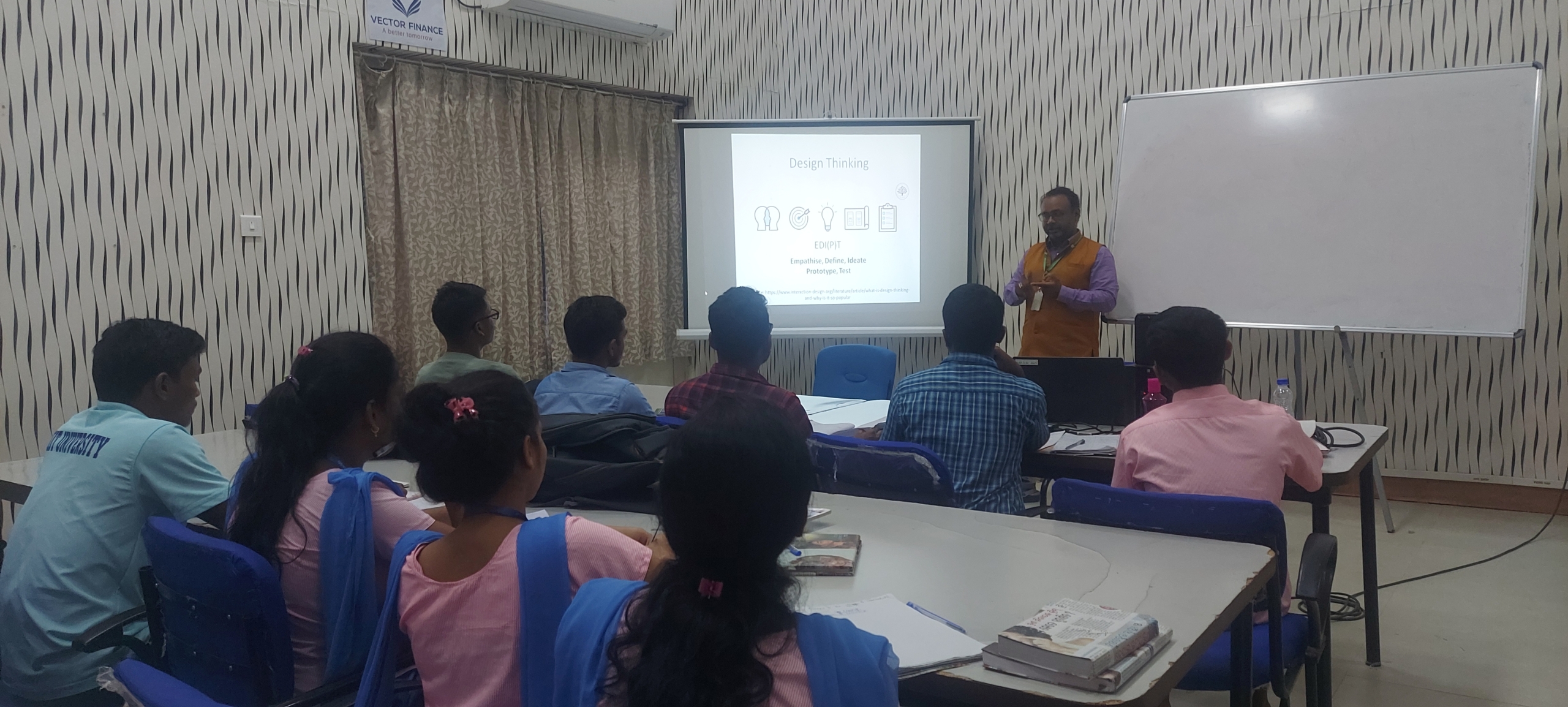 On 5th January 2024, Dr. Priyoneel Basu, Director of the Research and Development Cell and Innovation Ambassador at Kalinga Institute of Social Sciences Deemed to be University, conducted an interactive workshop on Design Thinking, Critical Thinking, and Innovation Design. The workshop aimed to explore contemporary trends in these domains and highlighted the importance and use of empathy, definition, ideation, prototyping, and testing in the innovation process.