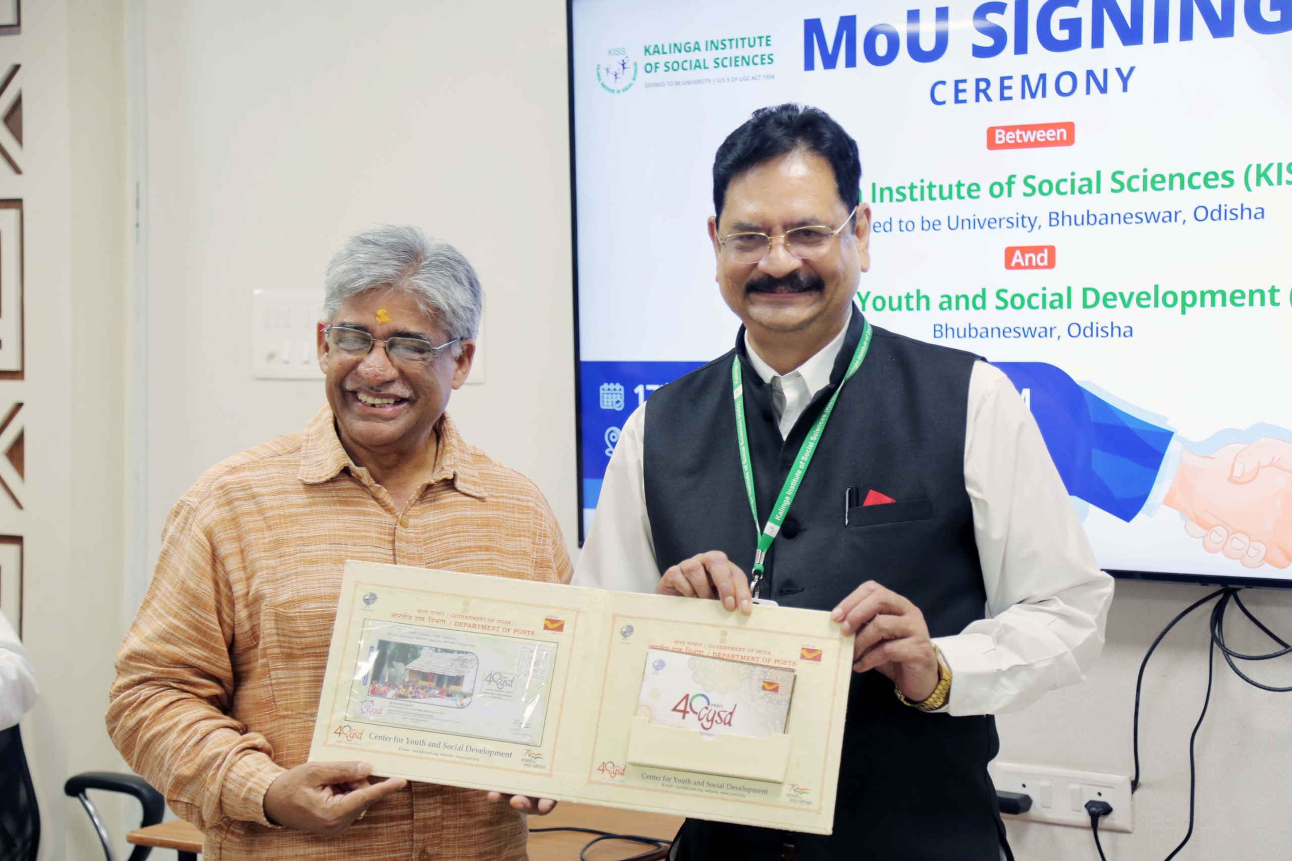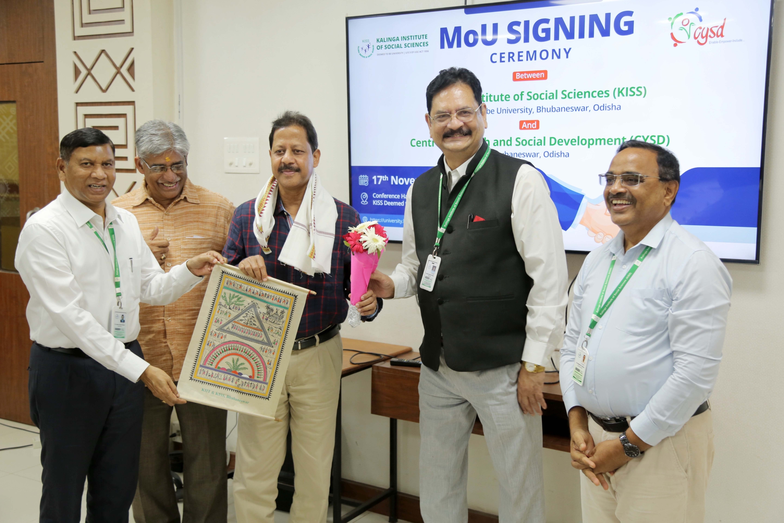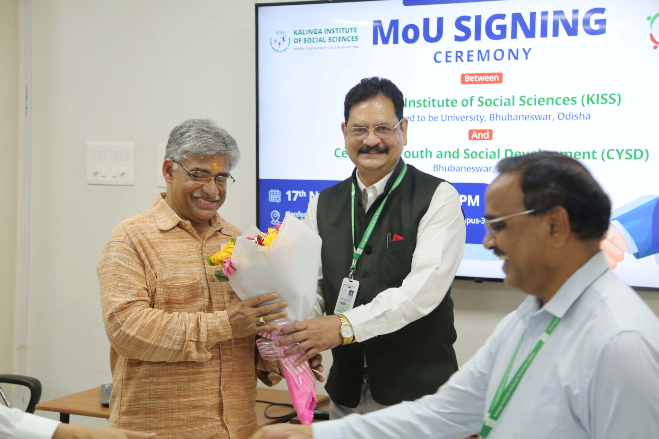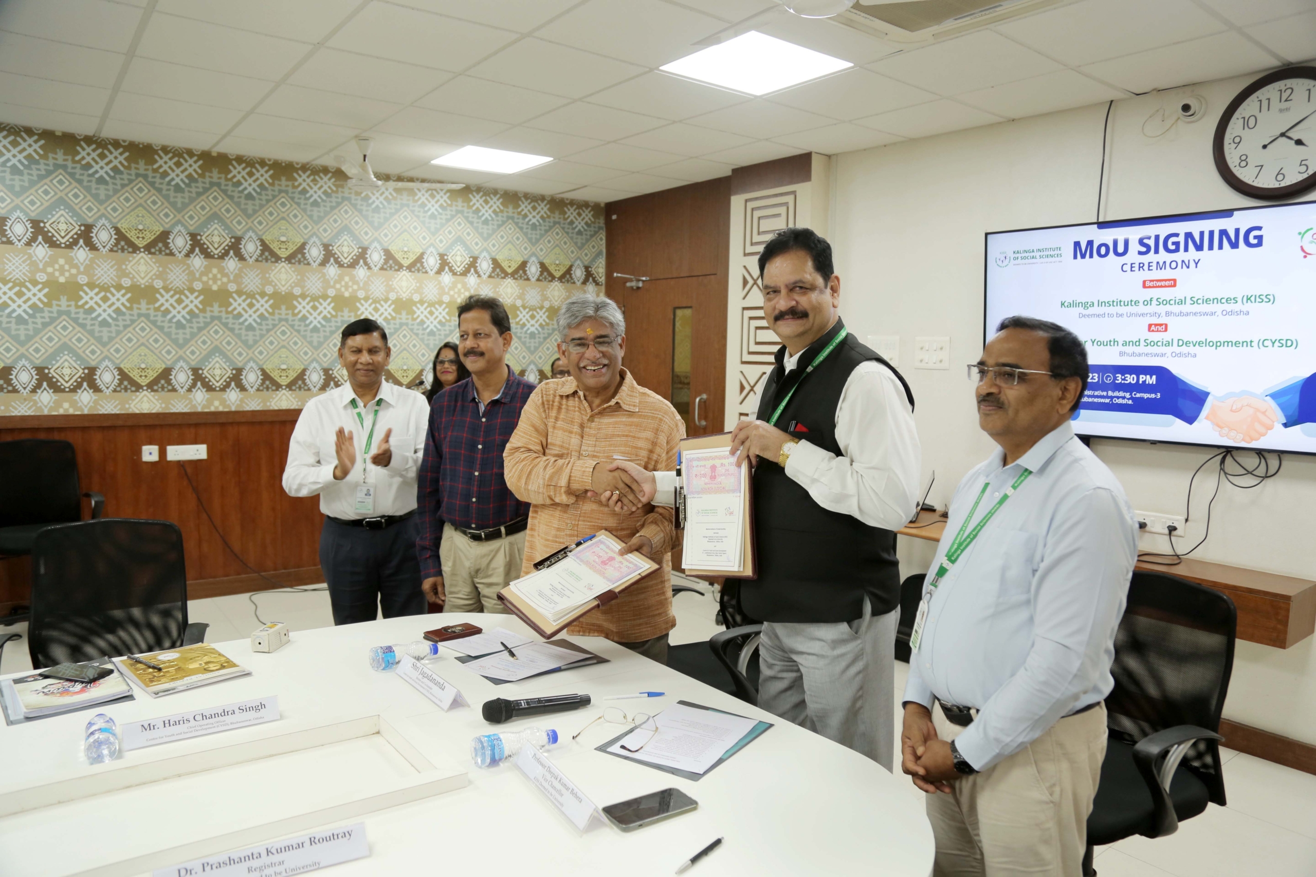 The Kalinga Institute of Social Sciences (KISS) Deemed to be University (KISS-DU) signed an MoU with the Centre for Youth and Social Development (CYSD) on 17th November 2023. This partnership aims at strengthening academics, research, collaborations, learning exchange and other allied activities. The MoU signing ceremony was organized by the Internal Quality Assurance Cell, KISS-DU.