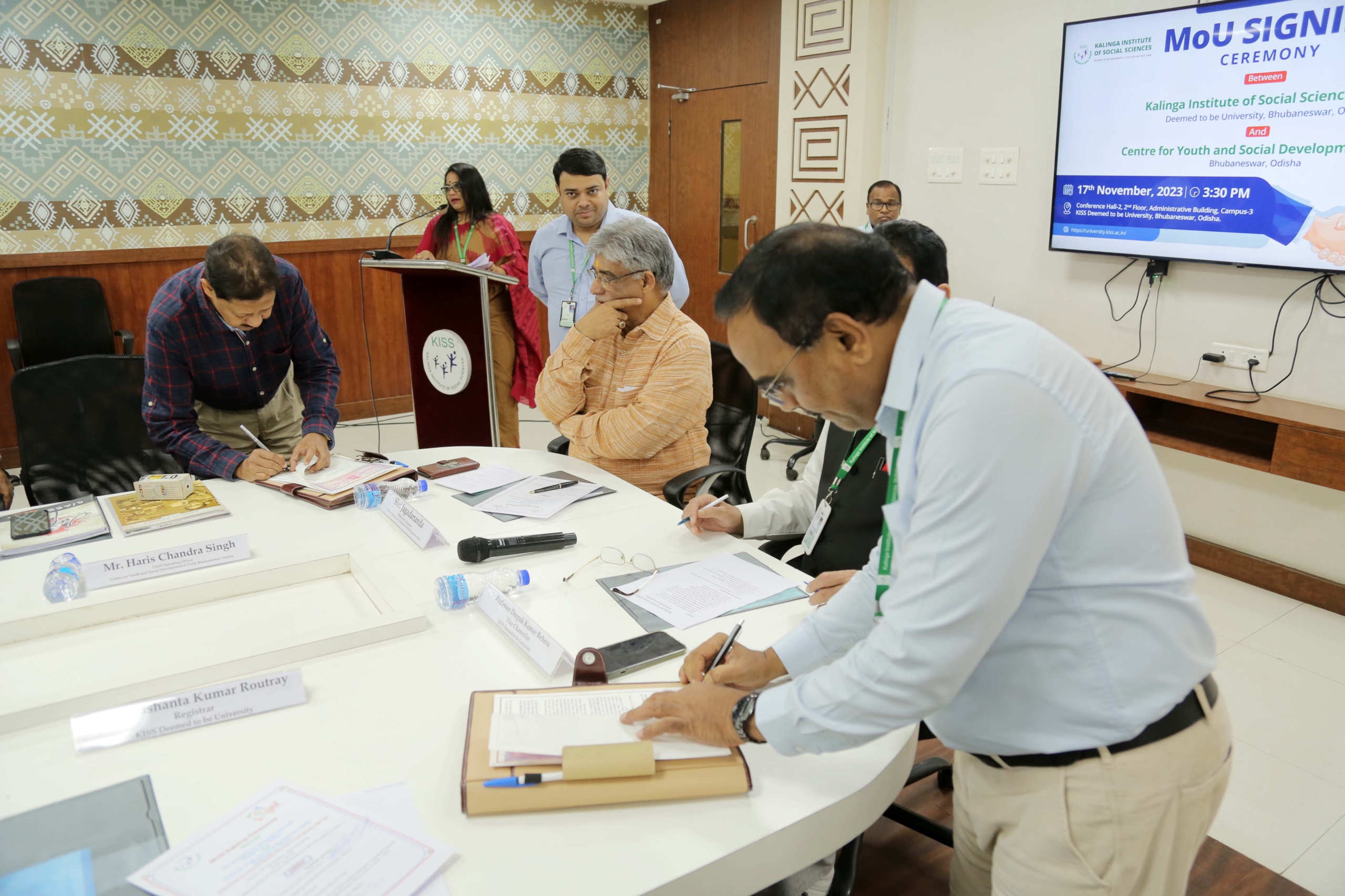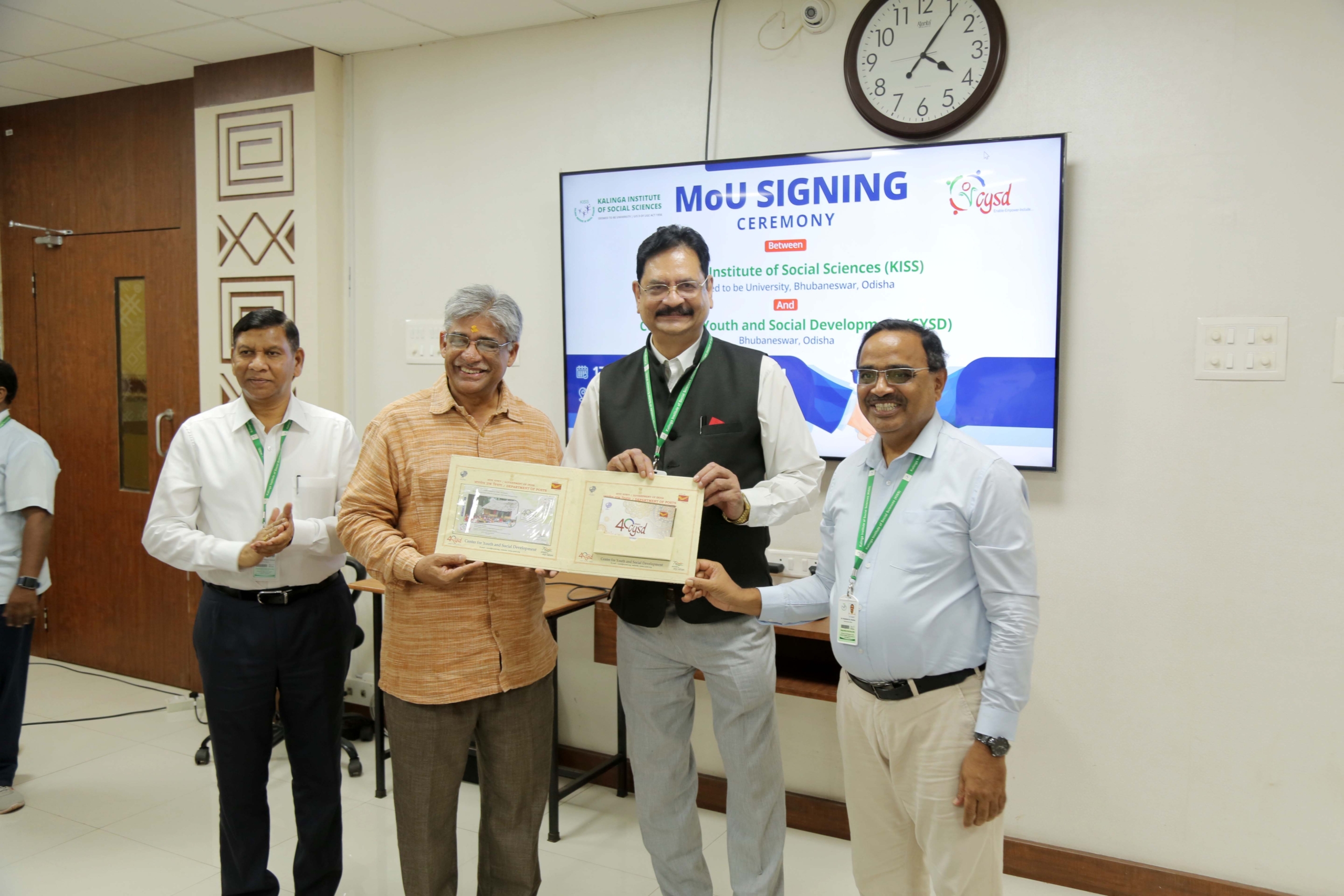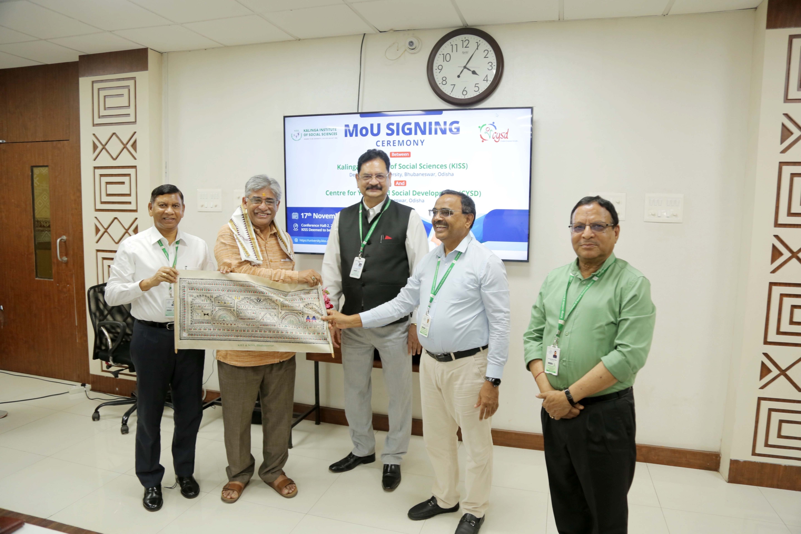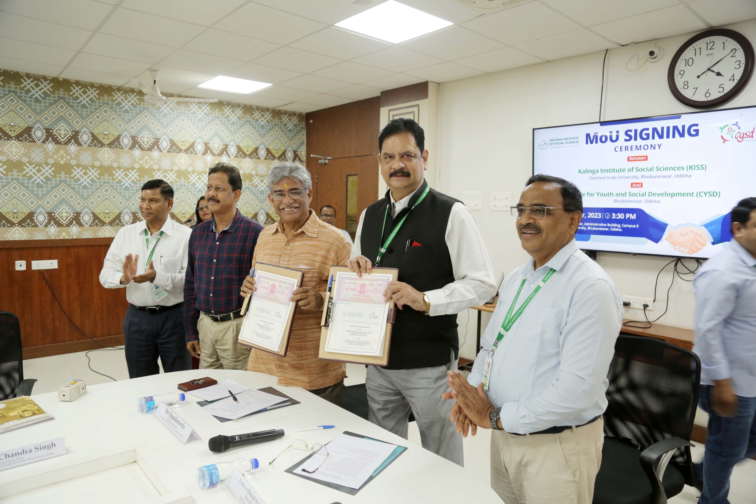 The Kalinga Institute of Social Sciences (KISS) Deemed to be University (KISS-DU) signed an MoU with the Centre for Youth and Social Development (CYSD) on 17th November 2023. This partnership aims at strengthening academics, research, collaborations, learning exchange and other allied activities. The MoU signing ceremony was organized by the Internal Quality Assurance Cell, KISS-DU.