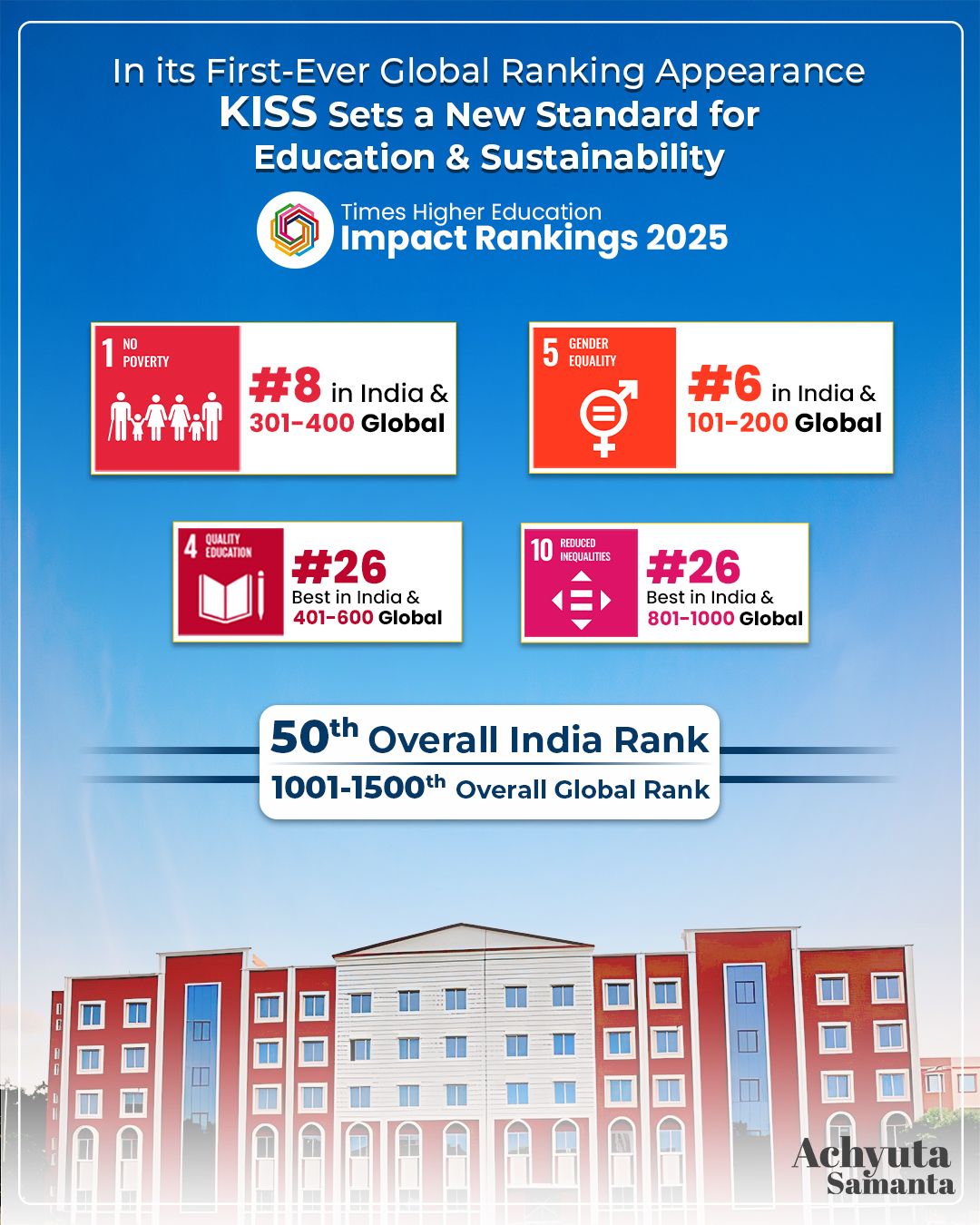 KISS & KISS Deemed to be University has proudly made its debut in the Times Higher Education Impact Rankings 2025 and has made its appearance in the first ever global ranking across five UN Sustainable Development Goals (SDGs) .This incredible achievement highlights the exceptional vision of Dr. Achyuta Samanta, Hon’ble Founder of KISS, KIIT and KIMS and the unwavering dedication of every staff member—teaching and non-teaching—across school,college and university levels.