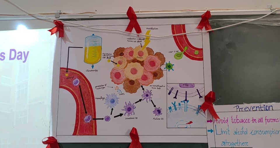 The Dean of the School, Dr Vimal Kumar Pandey, who graced the occasion as the Chief Guest, delivered an insightful address emphasizing the fundamental concepts of cancer origin, the distinction between normal and cancerous cells, and the significance of antioxidants in cancer prevention.