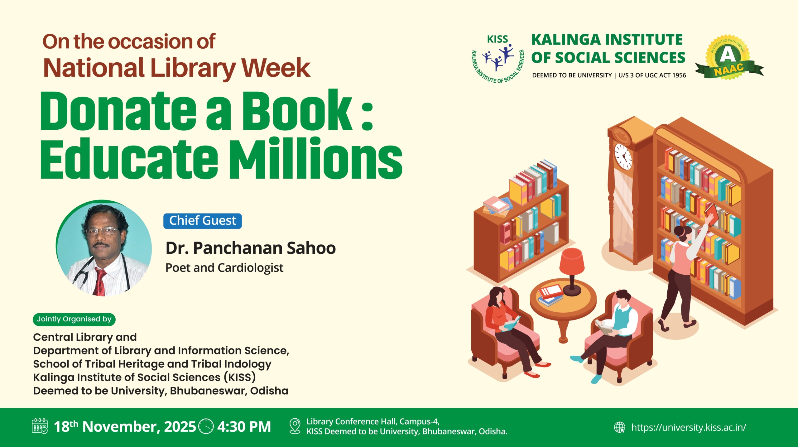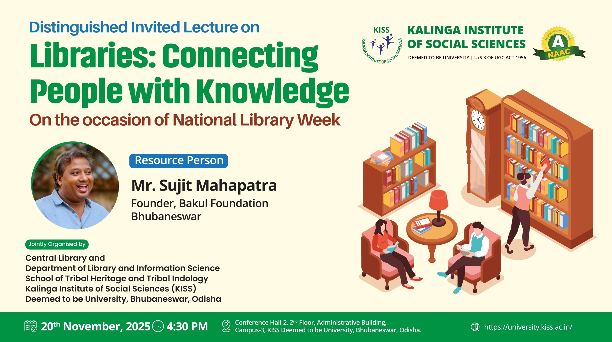 The KISS Central Library and the Department of Library and Information Science, School of Tribal Heritage and Tribal Indology (STHTI), KISS-DU jointly celebrated National Library Week from 14th to 20th November 2025 with the objective of promoting meaningful engagement with library resources and strengthening the culture of reading among students, research scholars, and faculty members. The week-long celebration highlighted the role of libraries as vital hubs for learning, research, and recreational reading.