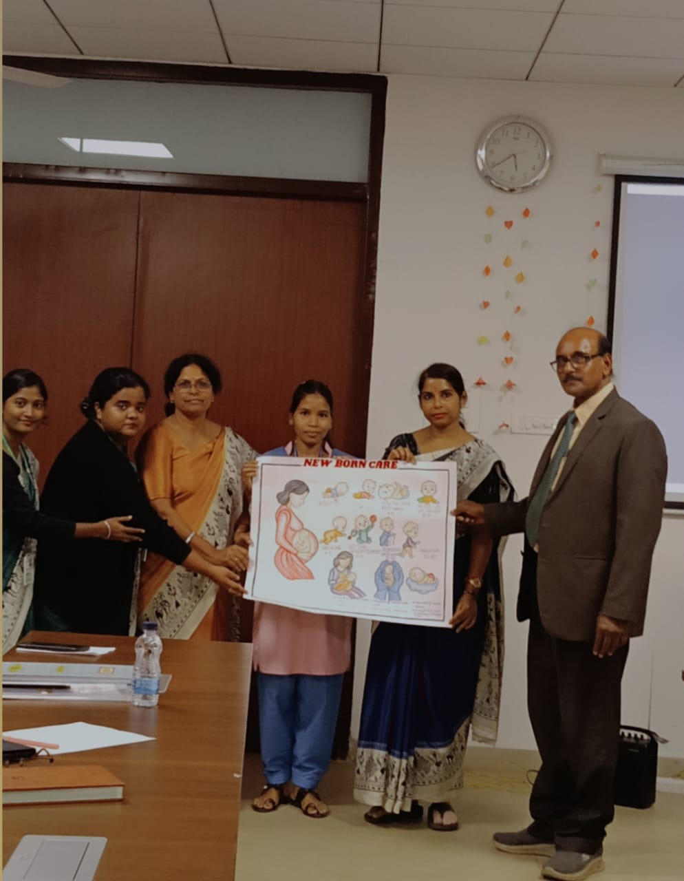 The Department of Home Science, School of Tribal Heritage and Tribal Indology (STHTI), KISS-DU observed National Newborn Care Week from 15th to 21st November 2025. Dr. Hemanta Kumar Mishra, MD Pediatrics was invited as the resource person. He threw light on neonatal care. The programme was hosted by Ms. Soumya Subhadarshini, Dr. Madhubrata Mishra introduced the resource person and the Dr. Sujata Acharya Dean STHTI felicitated the guest.
