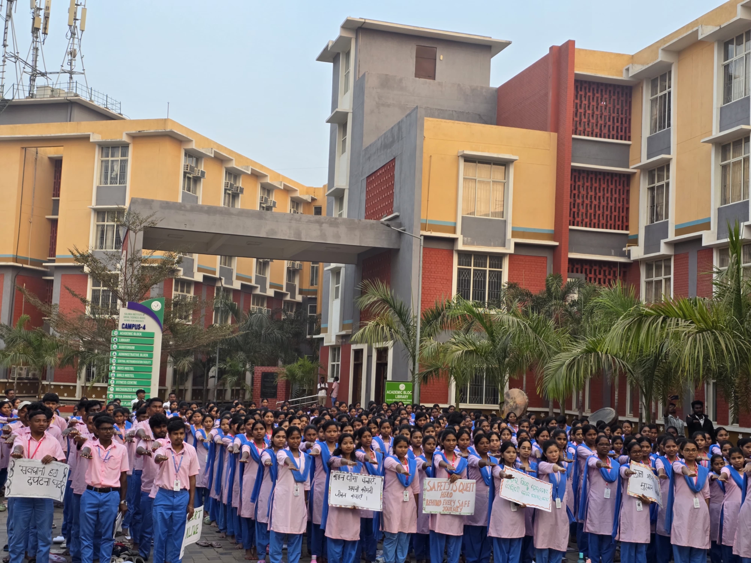 The National Road Safety Day was observed on 27th January 2026 by the NSS Bureau, Kalinga Institute of Social Sciences (KISS), Deemed to be University, Bhubaneswar, Odisha. The program was organized to spread awareness about road safety and to sensitize youth towards responsible behavior on roads, in alignment with the theme “Sadak Suraksha – Jeevan Raksha.” The event was graced by esteemed dignitaries Professor Kashi Nath Jena, Pro-Vice Chancellor, KISS-DU; Dr. Prashanta Kumar Routray, Registrar, KISS-DU and Mr. Suvendu Kumar Mohanty, Additional Director Student Affairs, among others.