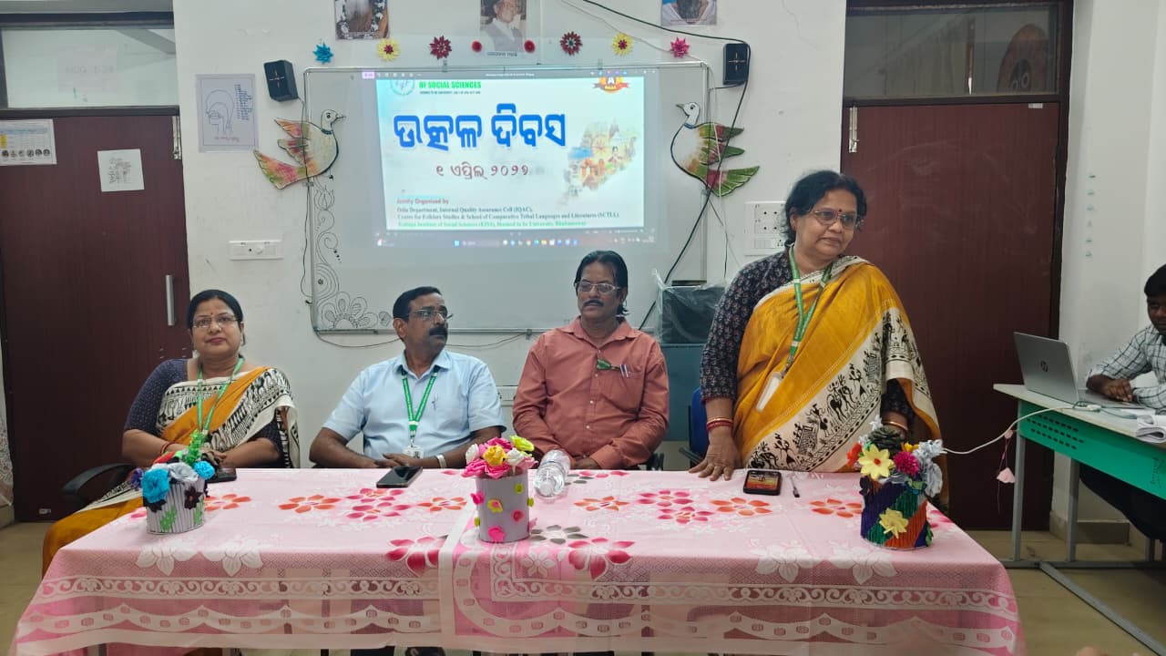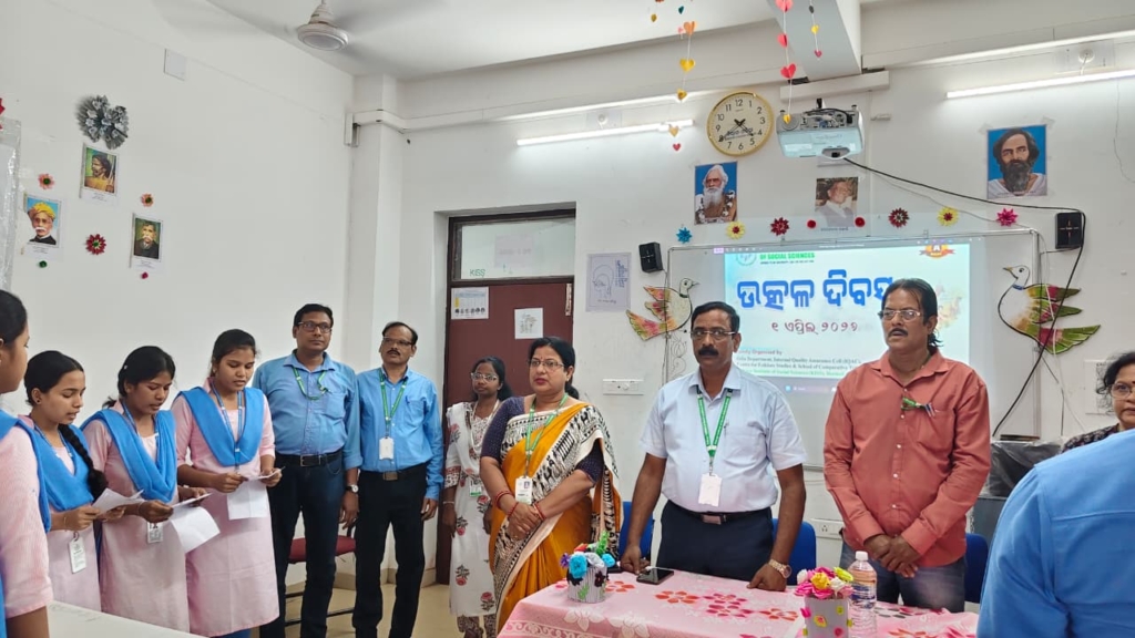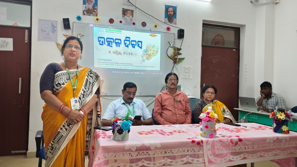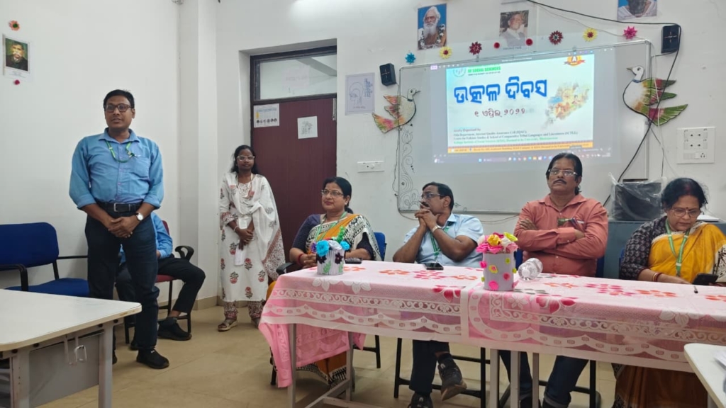 The Department of Odia and the Centre for Folklore Studies, School of Comparative Tribal Languages and Literatures (SCTLL), KISS Deemed to be University, Bhubaneswar, in association with the Internal Quality Assurance Cell (IQAC), observed Utkal Diwas on 1st April 2026 at 4:30 PM in Room No. 205, Academic Building, KISS Campus 4 with great enthusiasm and cultural fervour. The programme commenced with the inauguration of the Wall Magazine titled “କଳ୍ପବଲ୍ଲି (Kalpaballi),” which was ceremonially unveiled by the Chief Guest and Keynote Speaker, Dr. Chittaranjan Bhoi, Associate Professor and Dean, School of CTLL, and Chair Professor, Dr. B. R. Ambedkar Research Chair, KISS-DU along with the Heads of various Departments of the School. The wall magazine reflected the literary creativity, cultural consciousness, and academic engagement of the students. Following the inauguration, the Postgraduate students of the Department of Odia presented a soulful rendition of “Bande Utkala Janani,” creating a patriotic and emotionally charged atmosphere, paying homage to the spirit and identity of Odisha.