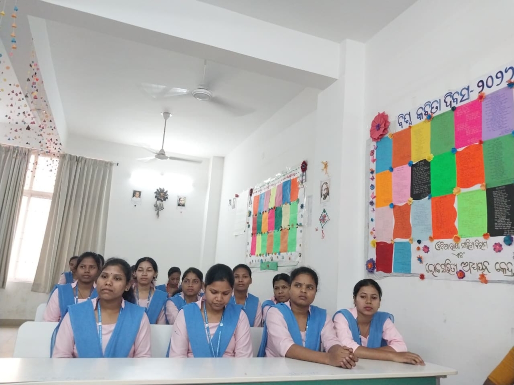Mrs. Debahuti Pattanaik, faculty member of the Odia Department, spoke on the need for preservation of the Odia language. She stressed that language is the carrier of culture and identity, and its preservation requires collective effort. She suggested measures such as promoting Odia in daily communication, encouraging reading, and writing in Odia, integrating technology with language learning, and ensuring intergenerational transmission of linguistic values.