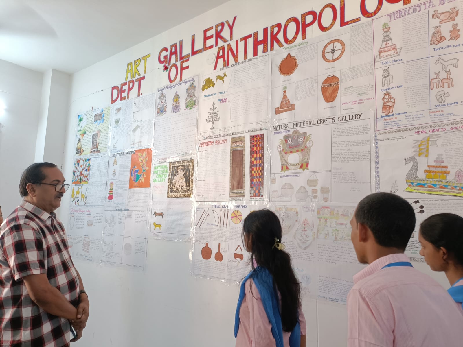 On the same occasion, an Art Gallery prepared by the students of the Department of Anthropology was formally inaugurated by our esteemed guest Professor Akhil Bihari Ota, IAS (Retd), Professor Emeritus, KISS Deemed to be University. The exhibition showcased a rich and diverse collection of anthropological themes, which was guided by Dr. Anindita Nayak, Assistant Professor, Department of Anthropology. The gallery reflected the students’ academic understanding and artistic interpretation of human societies. Faculty members, students, and invited guests appreciated the innovative efforts and meticulous presentation, which added significant academic and aesthetic value to the celebration. The inauguration of the Art Gallery became one of the major attractions of the programme, symbolizing the spirit of anthropological inquiry and cultural appreciation.