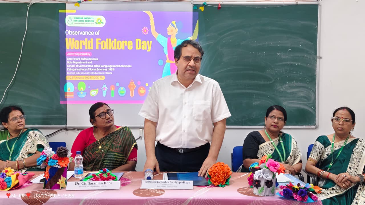 The Centre for Folklore Studies in collaboration with the Department of Odia, School of Comparative Tribal Languages and Literatures (SCTLL), KISS Deemed to be University, Bhubaneswar, organised a special programme to mark the observance of World Folklore Day on 22nd August 2025. The observance was designed to highlight the significance of folklore studies in the field of comparative literature, cultural documentation, and tribal language scholarship, while also encouraging active student and scholar participation.
