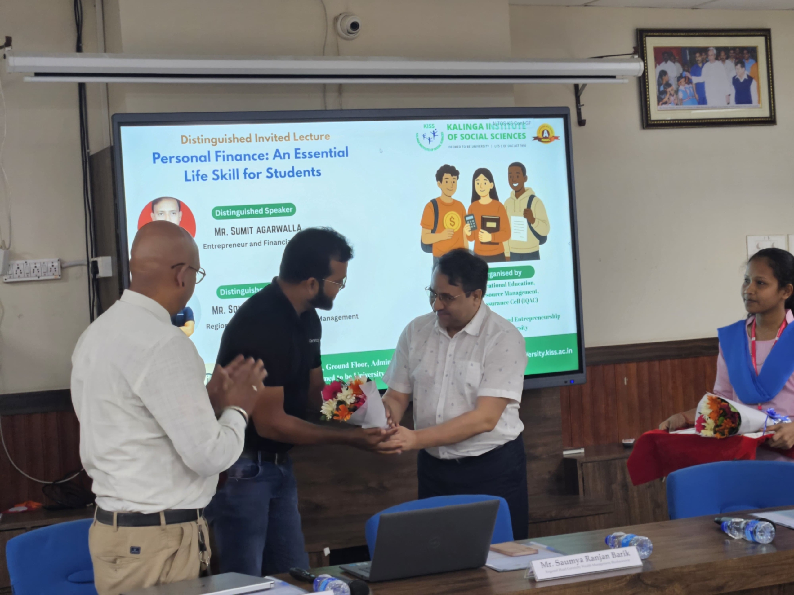 The session was graced and inaugurated by Professor Debashis Bandyopadhyay, Vice Chancellor, KISS Deemed to be University. In his Welcome Address, the Vice Chancellor emphasized the importance of personal finance as a life skill, particularly for students from diverse and tribal backgrounds who are entering a rapidly changing economic environment. He highlighted how financial literacy plays a crucial role in fostering independence, responsible decision-making, and long-term financial security among students. He also felicitated the invited speakers for their presence and valuable contribution to the event. The talk was attended by a large number of students, faculty members, and university officials, including Dr. Snigdharani Panda, Chairperson, Council of Deans, and other senior functionaries, all of whom appreciated the relevance and timing of the topic.