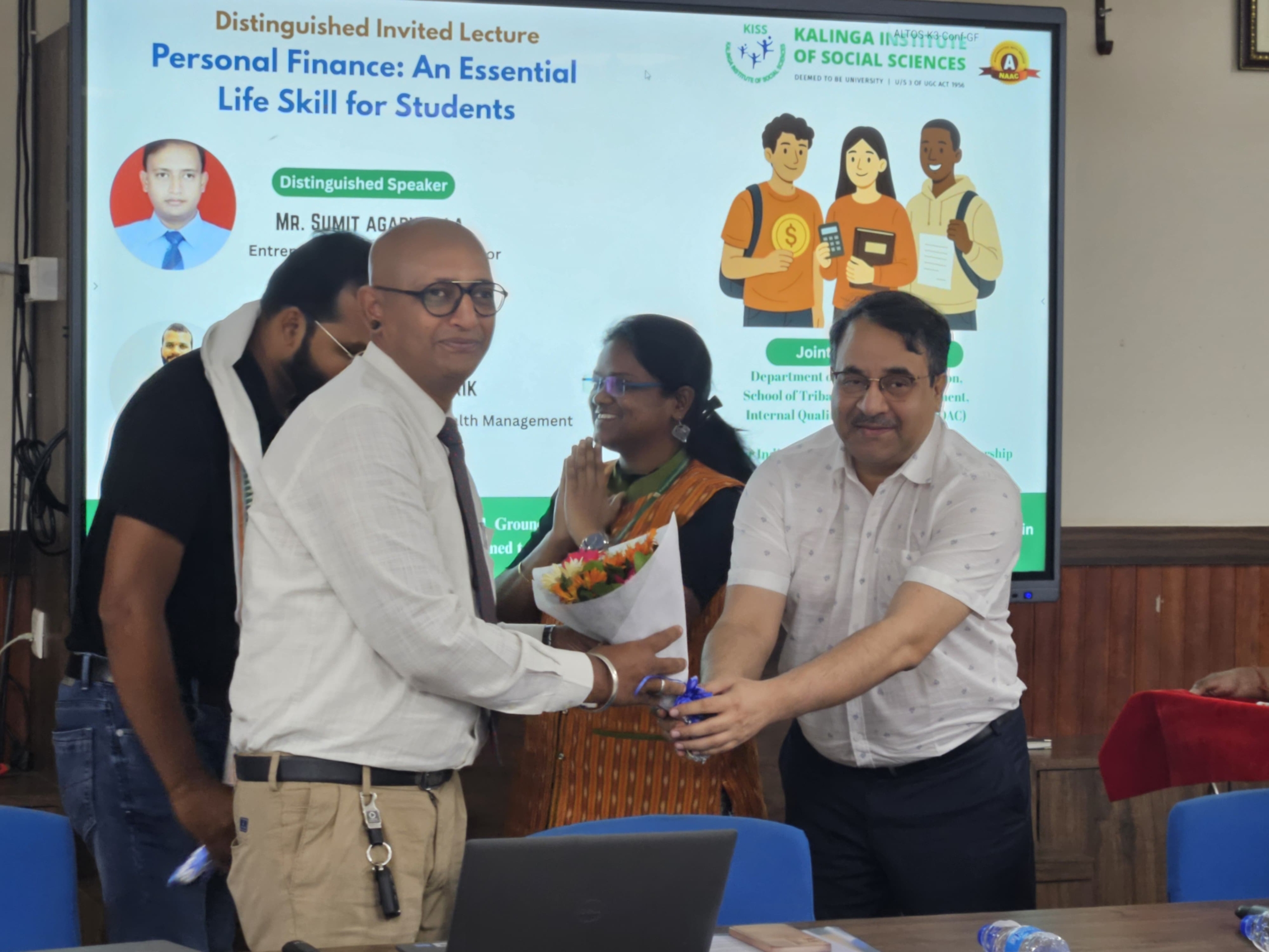 The Department of Vocational Education (Entrepreneurship Development), under the School of Tribal Resource Management, KISS Deemed to be University, organized a Distinguished Talk on “Personal Finance: An Essential Skill for the Students” to educate and empower students with vital financial literacy and investment knowledge on 7th April 2025. Mr. Soumyaranjan Barik, Manager, Centricity Wealth Management and Mr. Sumit Agarawalla, Entrepreneur and Financial Advisor were invited as the esteemed resource for the event.
