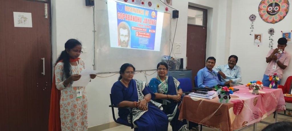 On the occasion of Gopabandhu Jayanti, the Department of Odia, School of Comparative Tribal Languages and Literatures (SCTLL), KISS Deemed to be University, organized a Student Seminar on 9th October 2025 at 12 PM in Room No. 205, Campus 4. The event commemorated the birth anniversary of Utkalmani Pandit Gopabandhu Das, the great patriot, social reformer, and poet of Odisha.