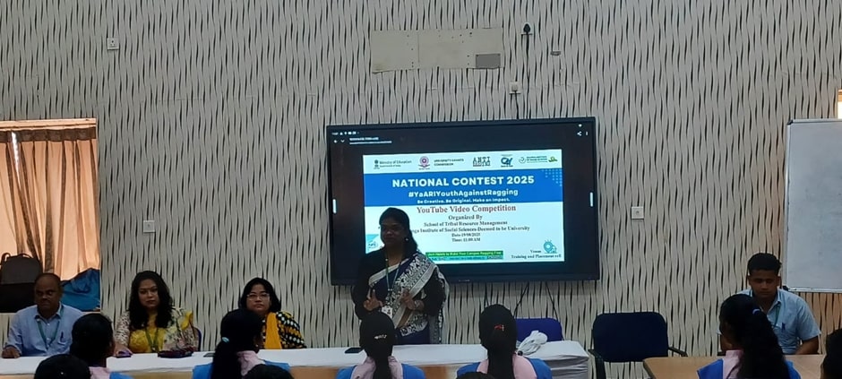 All the Departments under the School of Tribal Resource Management (STRM), KISS-DU observed Anti-Ragging Day and Anti-Ragging Week on 19th August 2025. The event began with the address by Dr. Arpana Premi Lina Oraon, Dean, STRM, who welcomed the gathering. She emphasized the importance of maintaining discipline and harmony among students. She also encouraged the students to creatively use social media platforms to spread awareness on the ill effects of ragging by making short YouTube videos under the campaign #YaARI Youth Against Anti-Ragging Initiative.