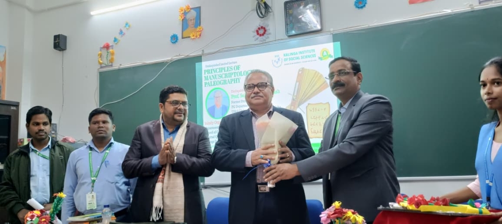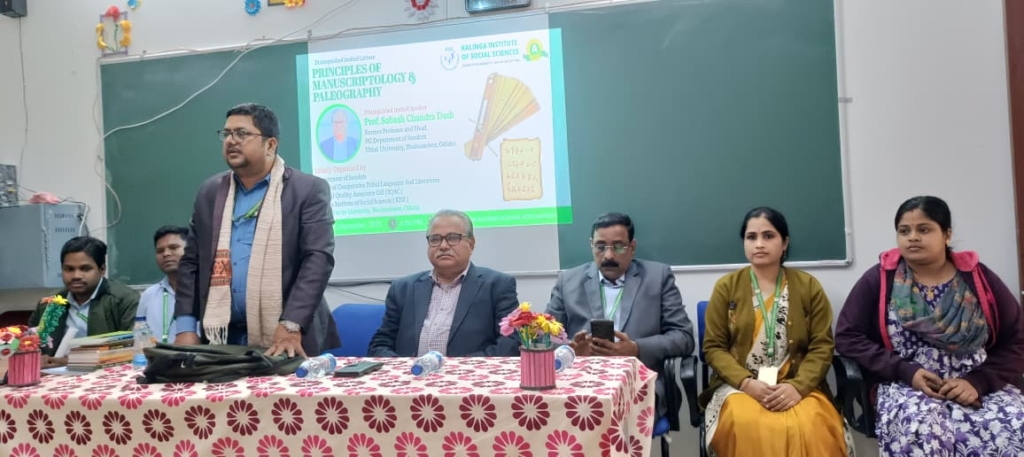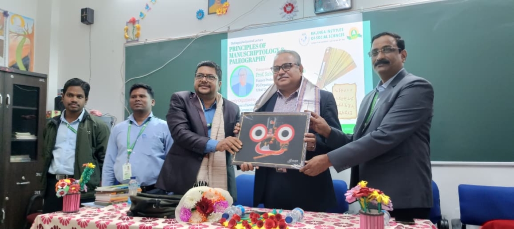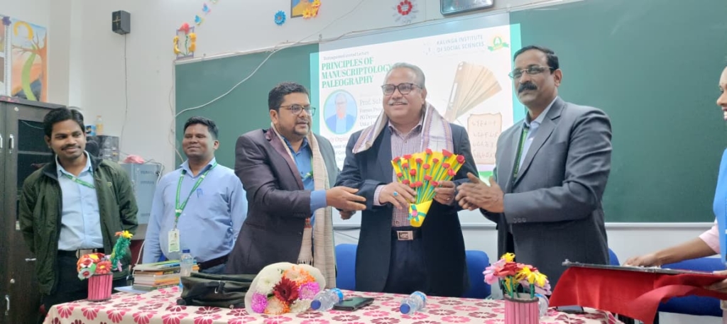 The Department of Sanskrit, School of Comparative Tribal Languages and Literatures (SCTLL), KISS-DU organized an invited lecture on “Principles of Manuscriptology and Paleography” on 9th December 2025. Professor Subash Chandra Dash, Former Professor and Head, P.G Department of Sanskrit, Utkal University was invited as the esteemed speaker.