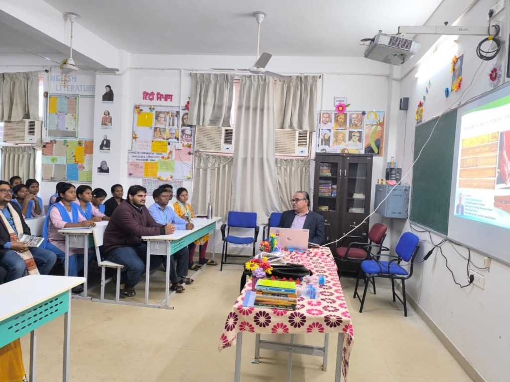 The session was presided over by Dr. Biraj Krushna Mishra, Assistant Professor and Head of the Department. The guest was introduced to the audience by Dr. Om Prakash Das, faculty in Sanskrit. In his welcome address, Dr. Chittaranjan Bhoi, Associate Professor of English and Dean, SCTLL, expressed his appreciation for such initiatives and for selecting an apt theme.