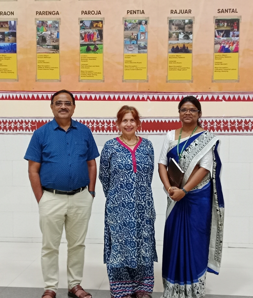 The welcome address was delivered by Dr. Chittaranjan Bhoi, Associate Professor and Dean, School of Comparative Tribal Languages and Literatures (SCTLL), who warmly greeted the gathering and introduced the objectives of the session. Dr. Farah Shroff was felicitated in recognition of her contributions to global public health and community-based research. She was introduced to the audience by Dr. Arpana Oraon, Director of the R&D Cell, who highlighted Dr. Shroff’s academic background and impactful work in the field of research and public health advocacy.