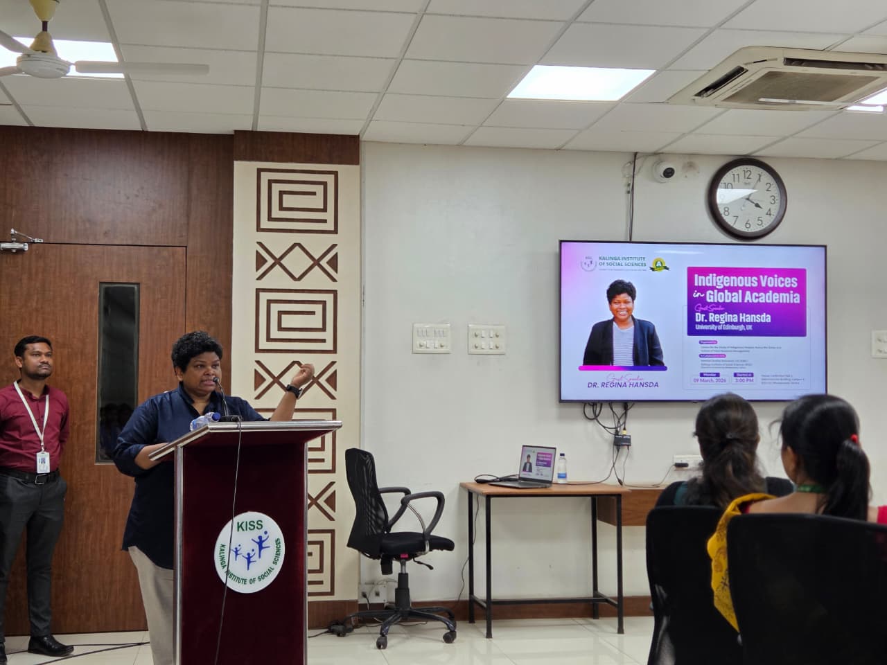 The Centre for the Study of Indigenous Peoples Across the Globe and the School of Tribal Resource Management in collaboration with Internal Quality Assurance Cell, KISS-DU organized an invited guest lecture on the topic “Indigenous Voices in Global Academia” was organized on 9th March 2026 at 3:30 p.m. in Conference Hall–02 of KISS Deemed to be University. The programme was jointly organized by the Centre for the Study of Indigenous People Across the Globe and the School of Tribal Resource Management, in collaboration with the Internal Quality Assurance Cell (IQAC), KISS Deemed to be University. Dr. Regina Hansda, University of Edinburg, Scotland was invited as the esteemed resource person for the session.