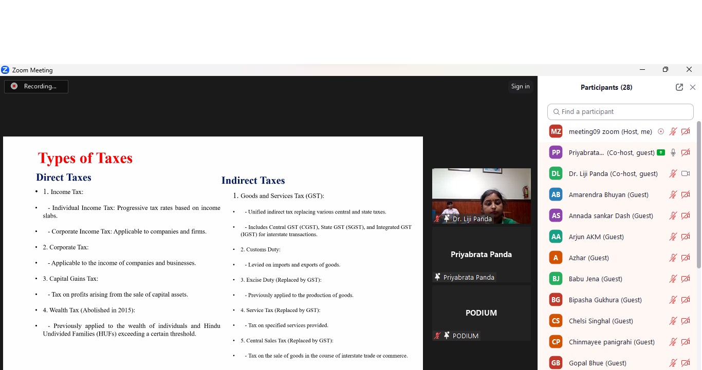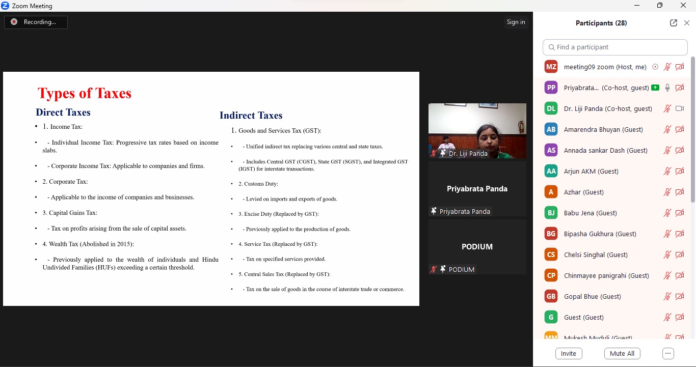 The guest speaker of the webinar was Dr. Priyabrata Panda, Head of Commerce Department, G.M. University. The event was also graced by the Head of Commerce Programme and faculty members of Tribal Resource Management, KISS-DU along with faculty members of G.M University. The webinar presented insights on the recent tax reforms in India and how it has impacted the economy. Dr. Panda also focused on the need of tax reforms and the effect it has on the social structure of a country. Focusing the tax reforms of India , Dr. Panda drew the attention of participants towards the challenge, advantages and prospects of such types of reforms on India.