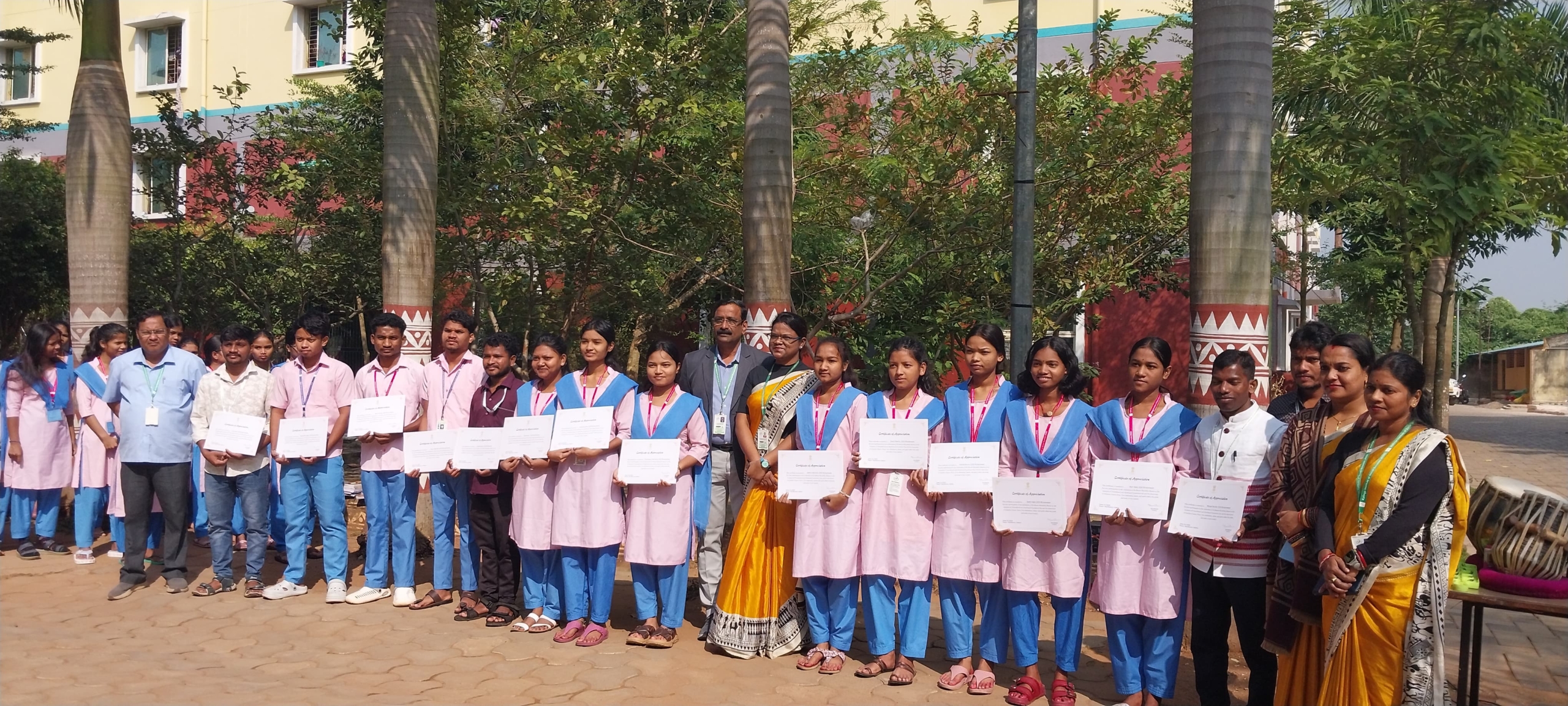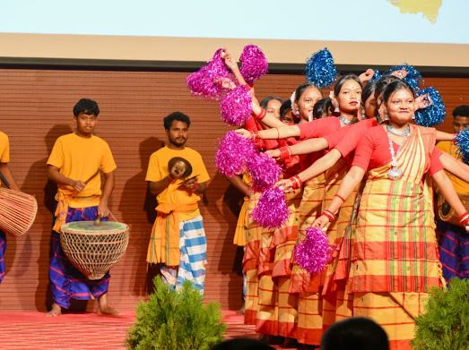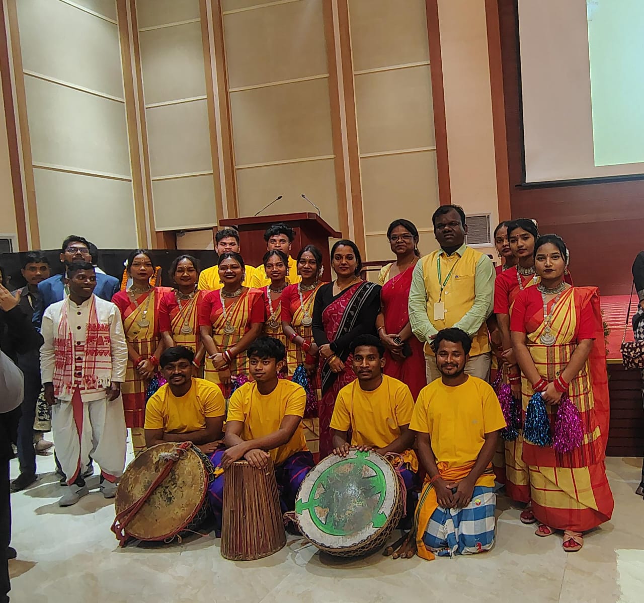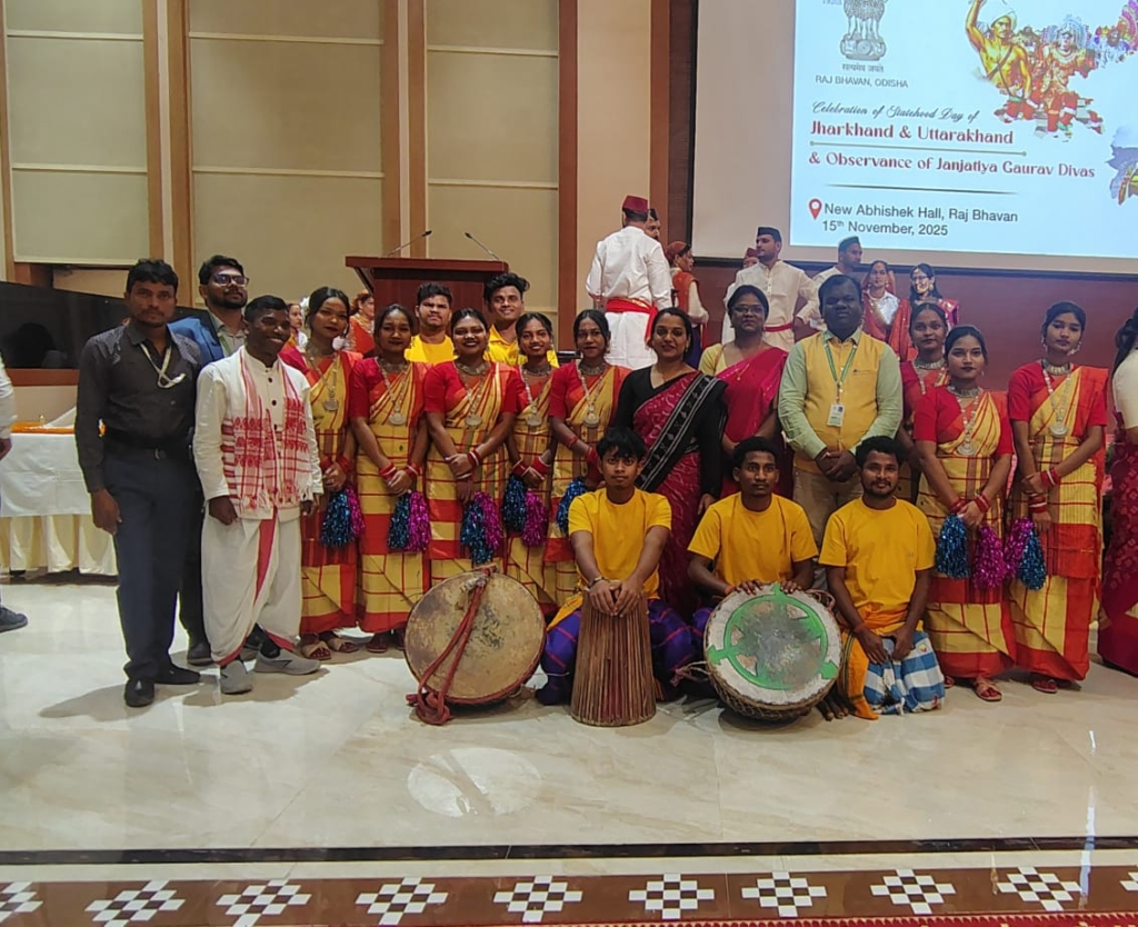 On the occasion of Jharkhand Foundation Day and Janjatiya Gaurav Diwas on 15 November 2025, a team of 16 students and 4 faculty members from Kalinga Institute of Social Sciences (KISS) Deemed to be University (KISS-DU), all natives of Jharkhand, were invited by the Hon’ble Governor of Odisha to participate in the state-level celebration held at Odisha Raj Bhavan, Bhubaneswar. The team was warmly received by Raj Bhavan officials, and the students presented a vibrant and traditional Santal Dance, representing the rich cultural heritage of Jharkhand. Dressed in colourful ethnic attire and performing to traditional rhythms, the students showcased the essence of tribal identity, unity, and celebration, drawing enthusiastic appreciation from the audience. The students also received certificates in recognition of their performance.