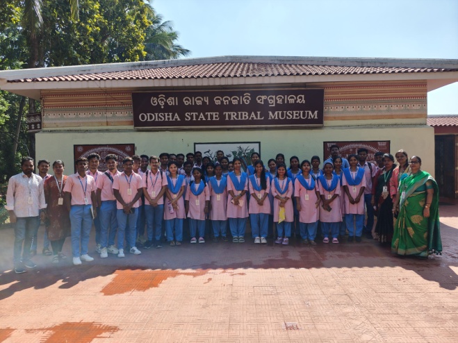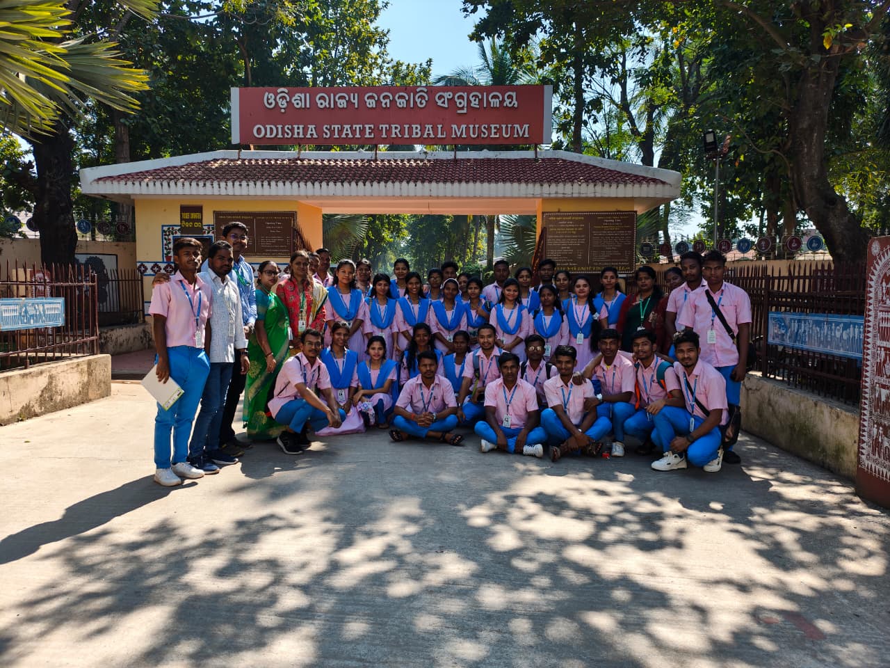 It was a one-day educational and exposure-based tour to understand the ethnographic and tribal heritage of Odisha. The primary objective of the visit was to observe and study the various galleries showcasing artifacts representing the cultural, social and economic life of different tribal communities of Odisha. Special focus was given to the traditional Tribal Dresses and Ornaments Gallery, Textile Gallery, Agricultural Implements Gallery, and the Musical Instruments Gallery. Students also aimed to identify the Particularly Vulnerable Tribal Groups (PVTGs) and understand their ethnographic profiles, livelihood practices, and subsistence strategies. Through close observation of the displayed artefacts, students developed an understanding of the similarities and differences among the cultural materials of various tribal groups. The visit enriched their knowledge of tribal material culture, lifestyle patterns, socio-economic structures, and the rich cultural heritage associated with each community. In addition to the indoor galleries, students visited the open-air museum, which exhibits traditional settlement structures of different tribal groups of Odisha. They observed the architectural patterns of tribal houses, their functional uses, and the cultural significance associated with these structures from time immemorial. The museum’s dedicated sections on tribal religious practices further helped students gain insights into the socio-religious beliefs followed by diverse tribal communities. Outcome of the Visit The students of PG, Semester–III actively engaged throughout the visit and explored each gallery with curiosity and enthusiasm. They documented their observations and captured photographs for academic reference. This educational tour has been considered one of the significant school-level academic activities of 2025, contributing meaningfully to their understanding of tribal studies.