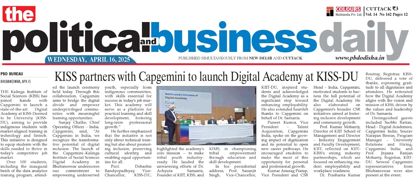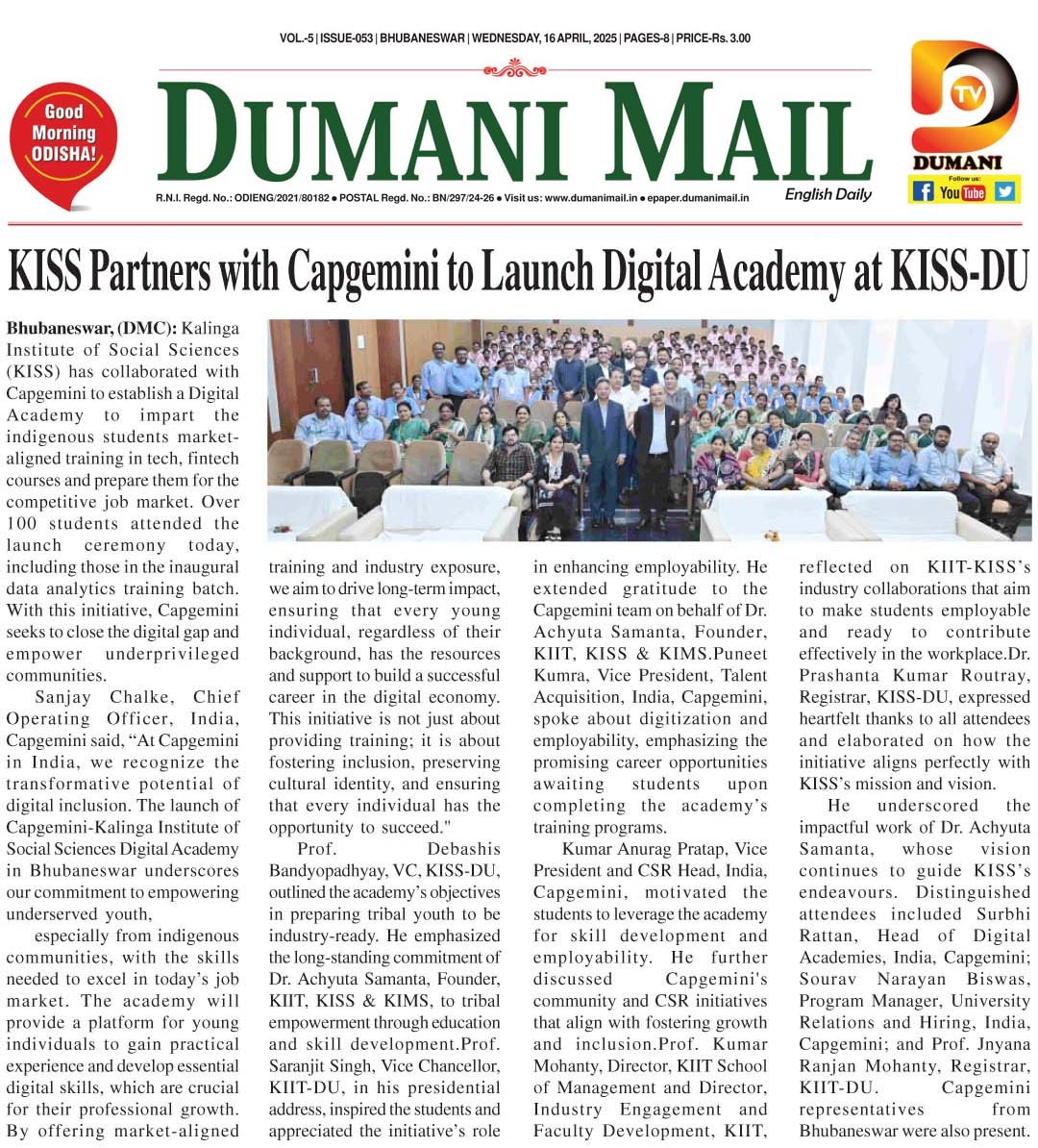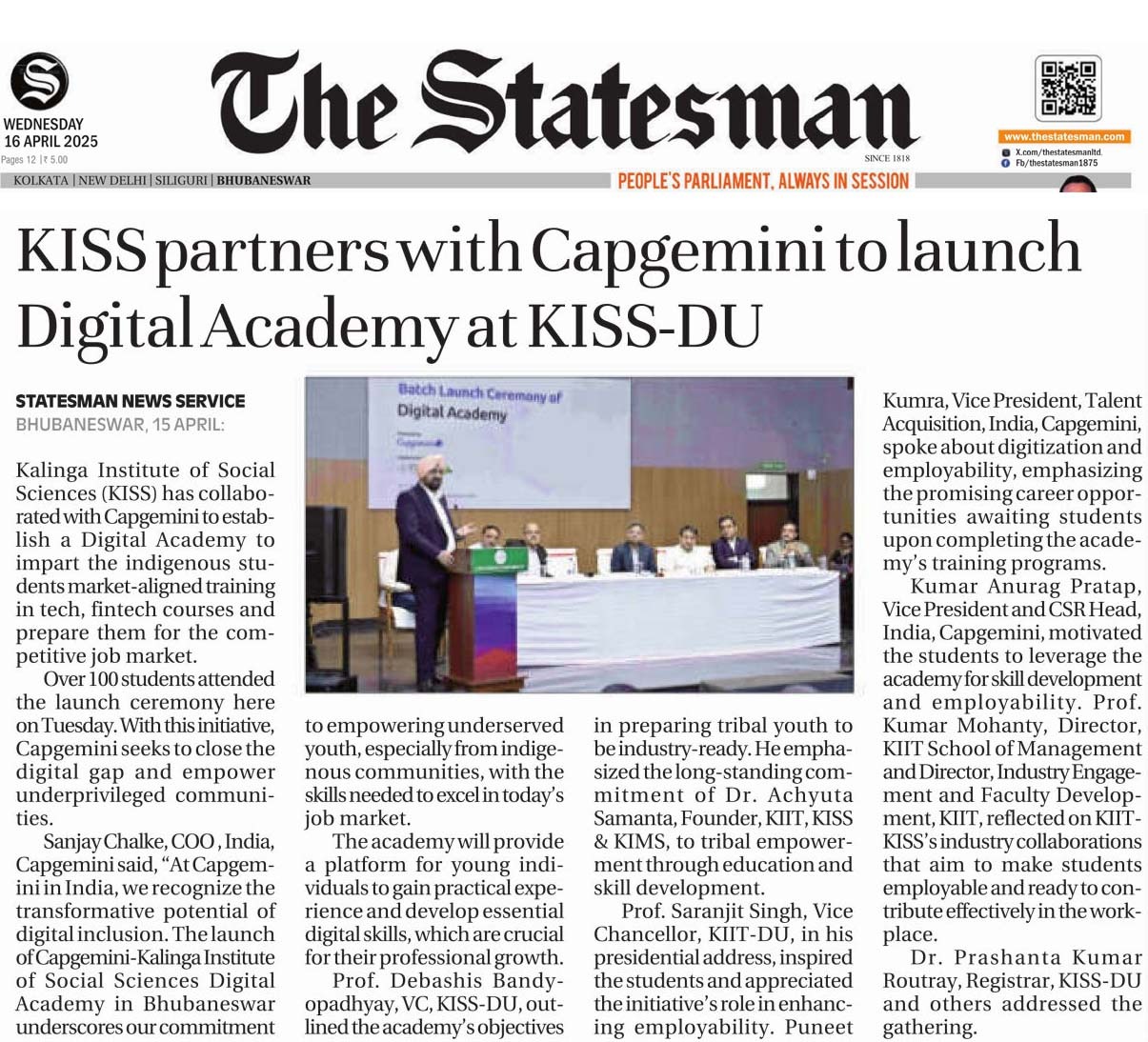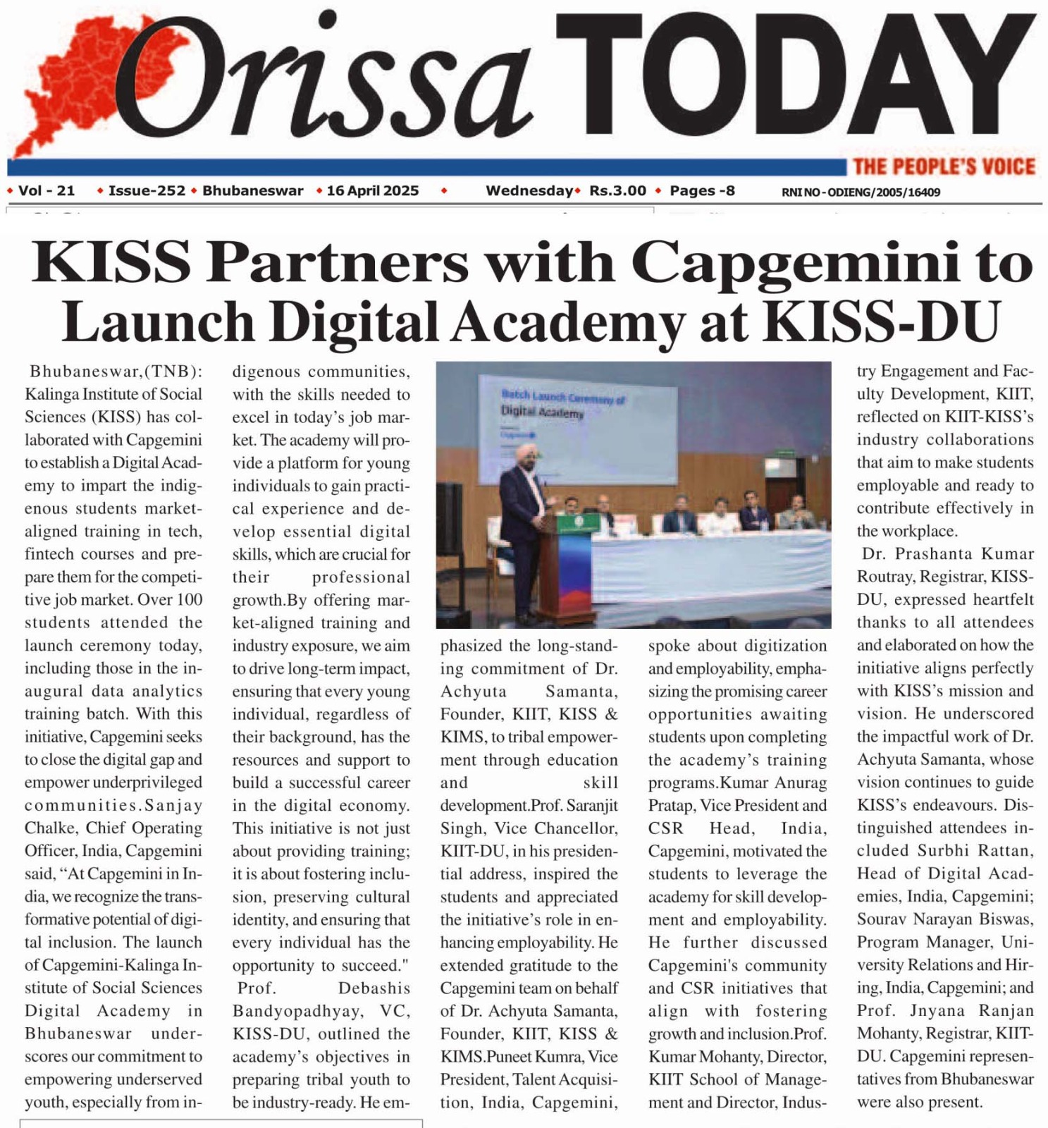 Kalinga Institute of Social Sciences (KISS) has collaborated with Capgemini to establish a Digital Academy to impart the indigenous students market-aligned training in tech, fintech courses and prepare them for the competitive job market. Over 100 students attended the launch ceremony today, including those in the inaugural data analytics training batch. With this initiative, Capgemini seeks to close the digital gap and empower underprivileged communities.
