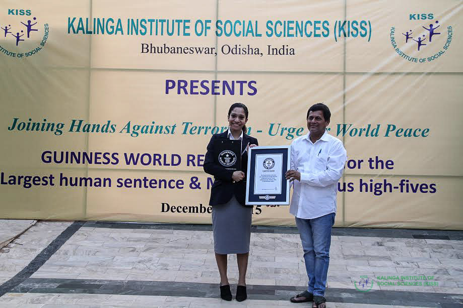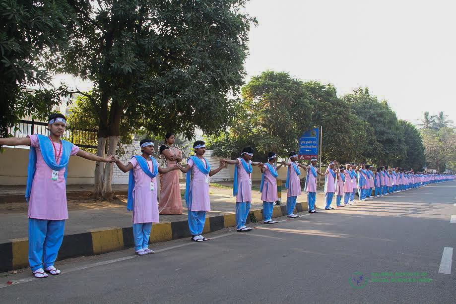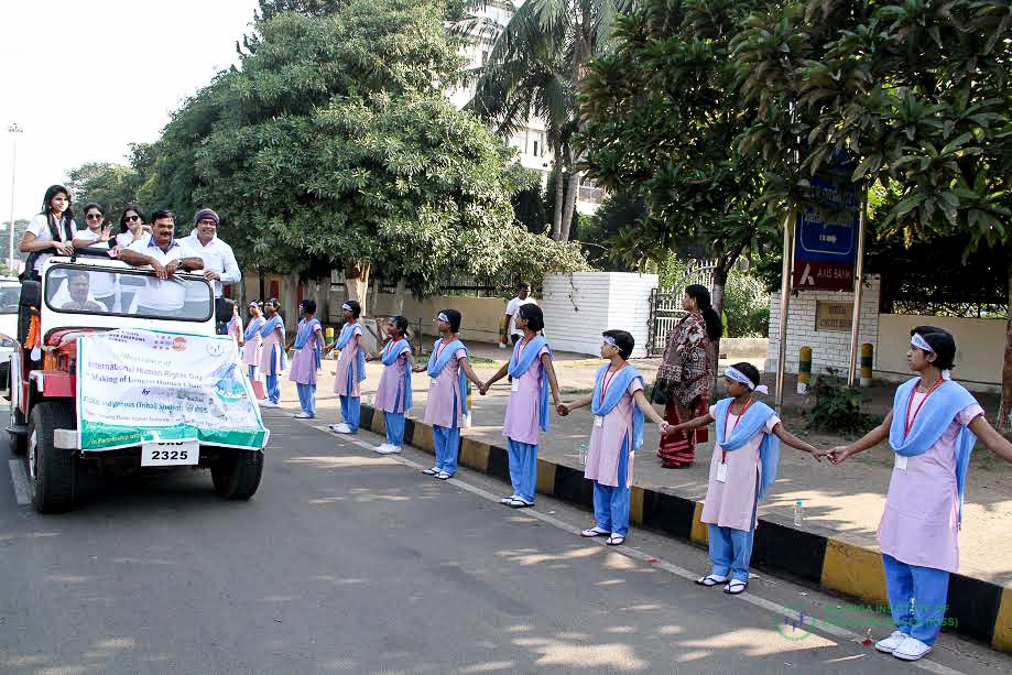 Students of Kalinga Institute of Social Sciences (KISS), Bhubaneswar, today sent out a powerful message of world peace on the occasion of International Human Rights Day by forming a great human chain encircling the city of Bhubaneswar.