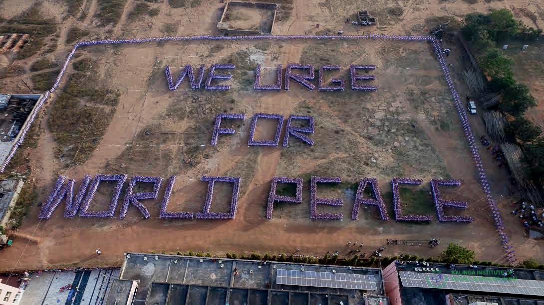 Students of Kalinga Institute of Social Sciences (KISS), Bhubaneswar, today sent out a powerful message of world peace on the occasion of International Human Rights Day by forming a great human chain encircling the city of Bhubaneswar.
