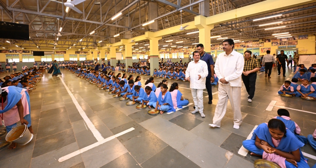 At KISS, he received an enthusiastic welcome from the students. He later had lunch with them — a gesture that holds special significance as he had expressed his desire to dine with the children during his visit. After lunch, he spent a long time interacting with the students, discussing various topics, and remarked how delighted he felt sharing a meal with such a large group of children.