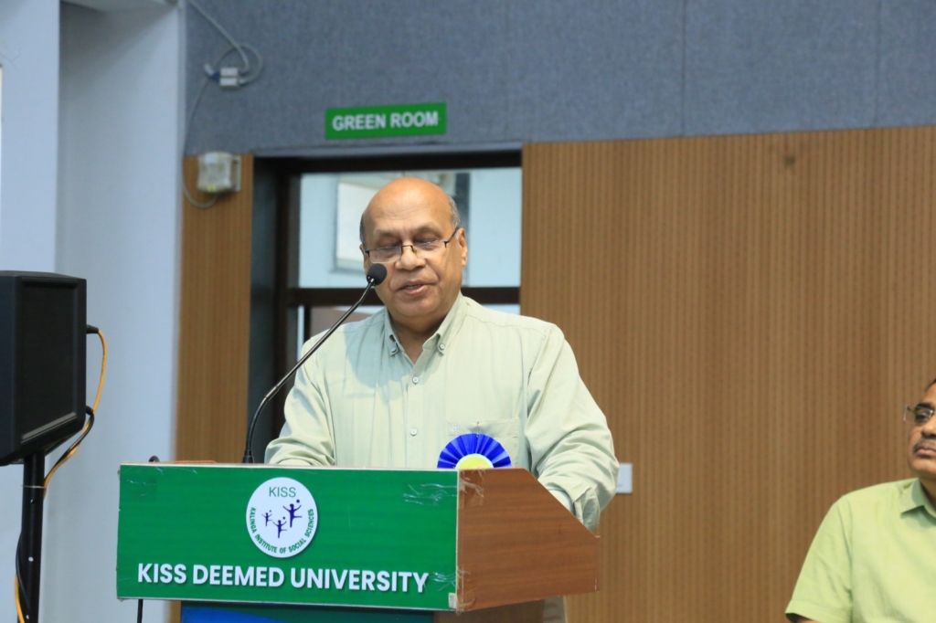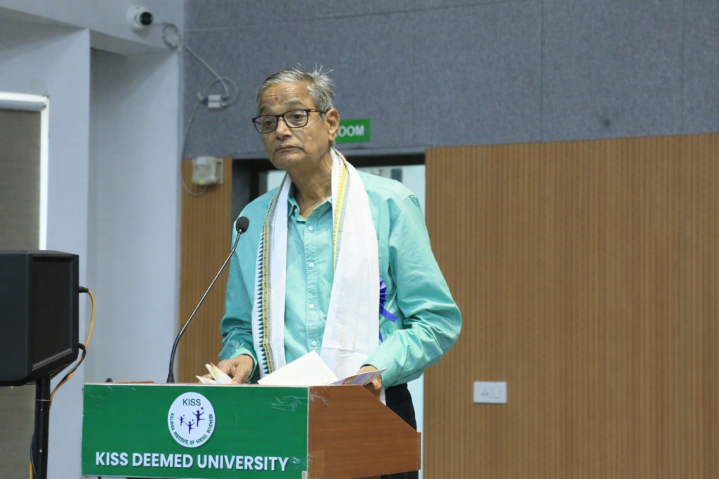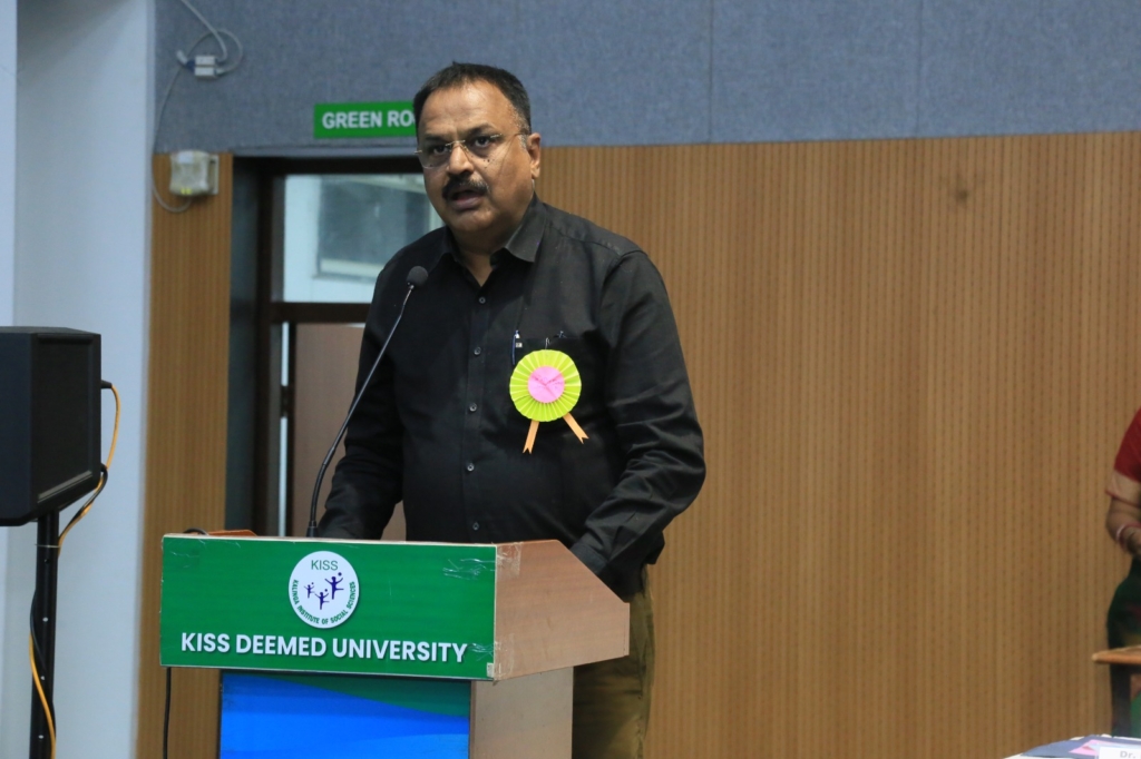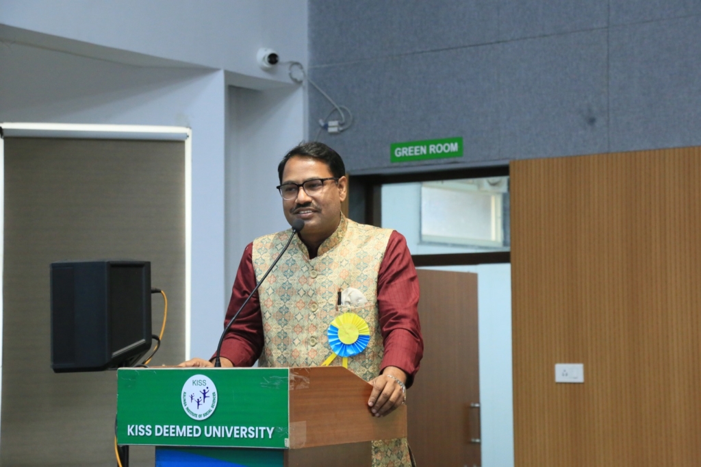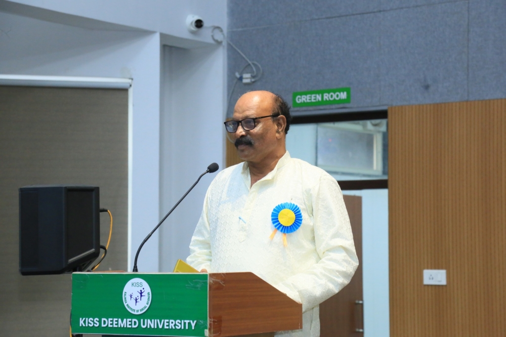 The formal addresses began with Dr. Prashanta Kumar Routray, Registrar of KISS-DU, who eloquently spoke about the deep connection between poetry and one’s mother tongue, emphasising how poetry nurtures cultural identity and emotional depth. Professor Kashi Nath Jena, Pro Vice Chancellor, further enriched the session by reflecting on poetry as a timeless art form that preserves human experiences and values across generations.