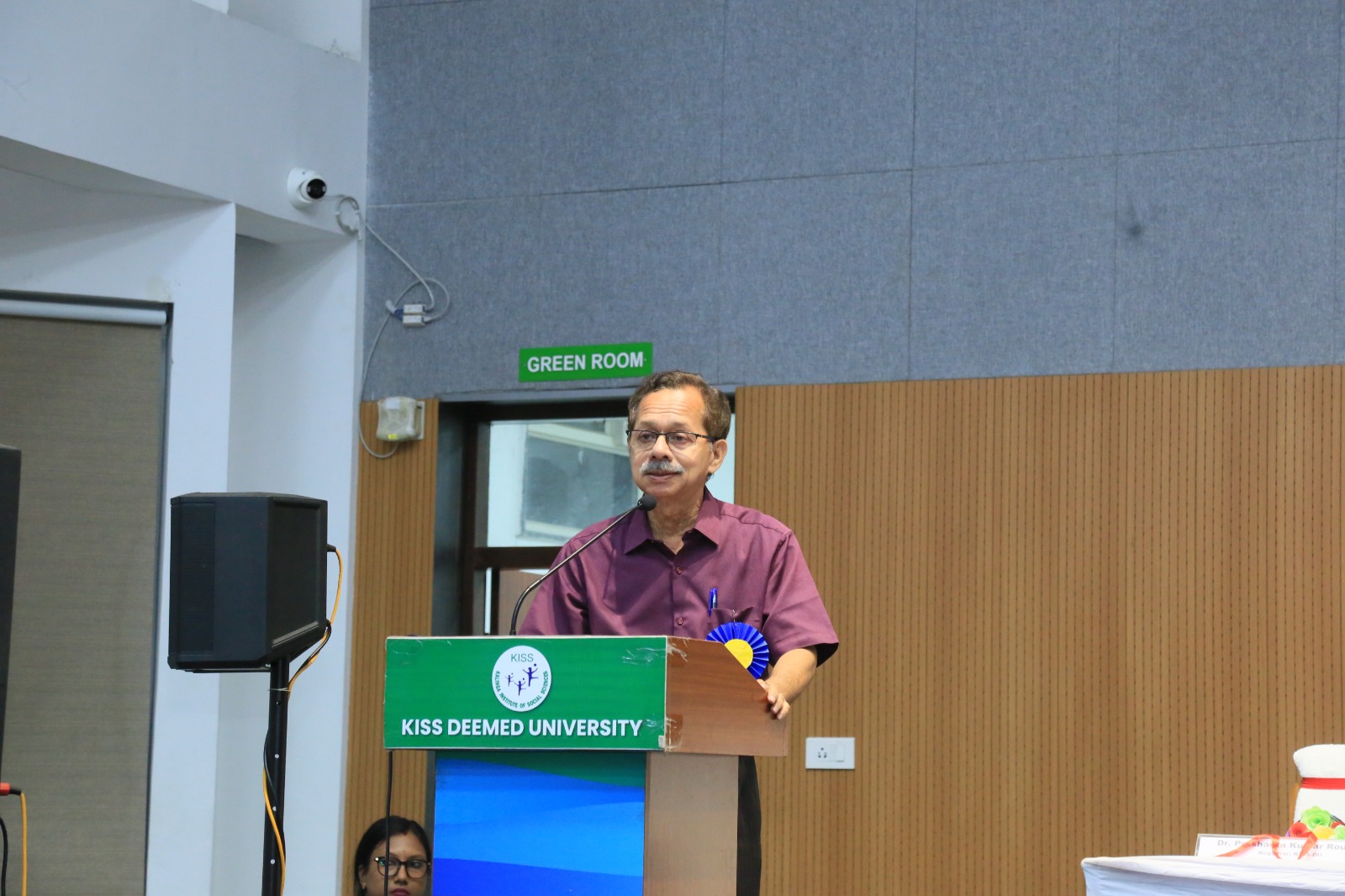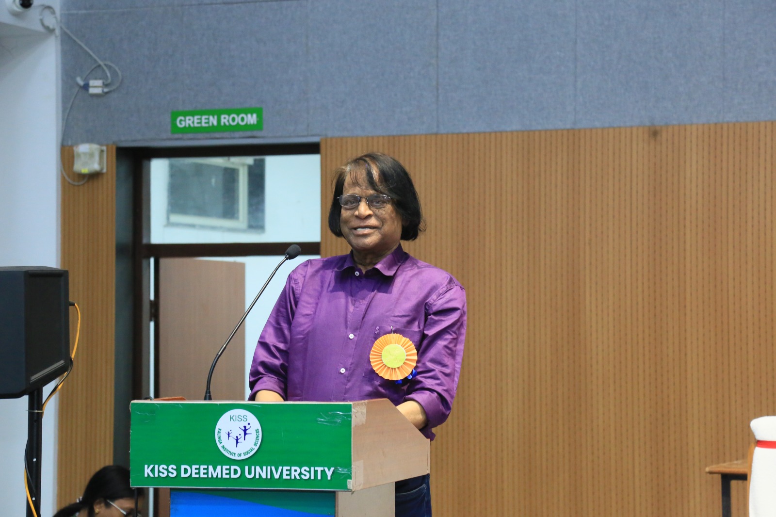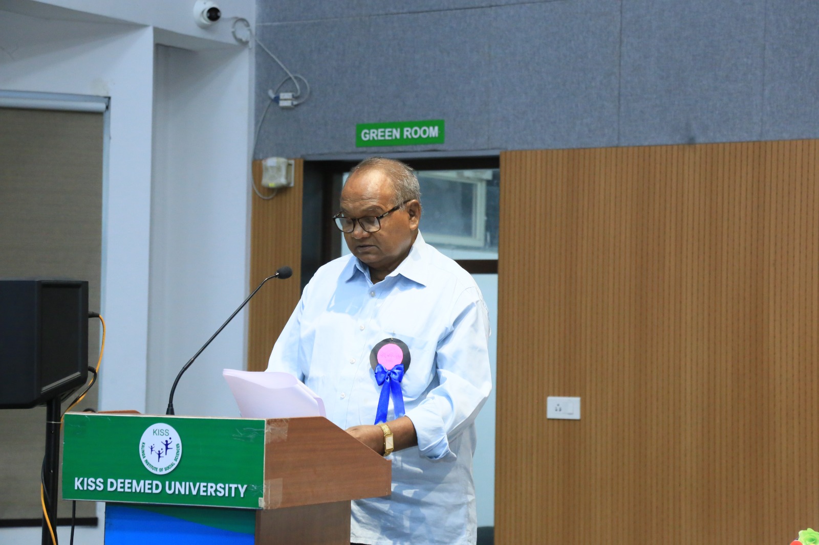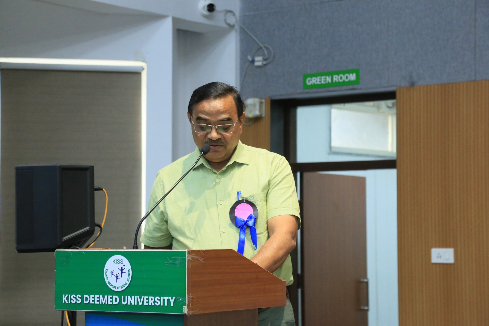The formal addresses began with Dr. Prashanta Kumar Routray, Registrar of KISS-DU, who eloquently spoke about the deep connection between poetry and one’s mother tongue, emphasising how poetry nurtures cultural identity and emotional depth. Professor Kashi Nath Jena, Pro Vice Chancellor, further enriched the session by reflecting on poetry as a timeless art form that preserves human experiences and values across generations.