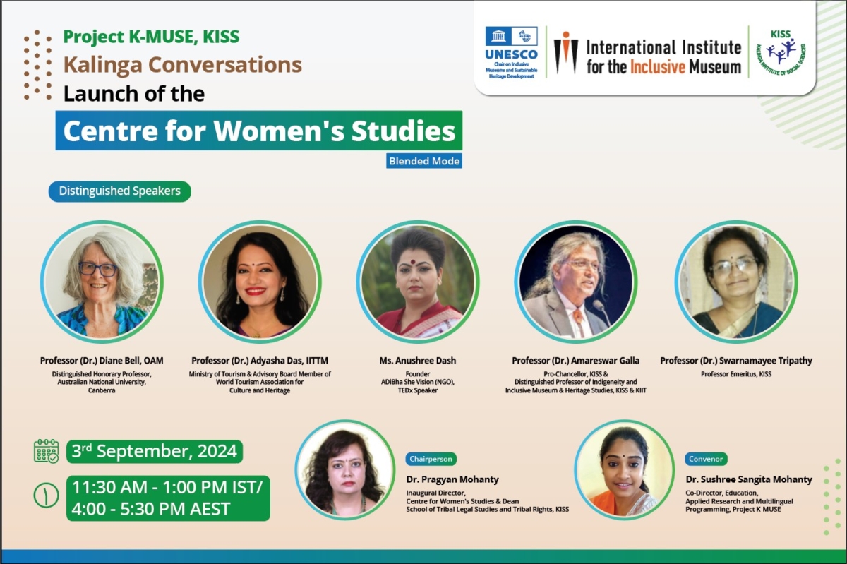 - Centre for Women’s Studies: The Kalinga Institute of Social Sciences (KISS) inaugurated the Centre for Women’s Studies on 3rd September 2024, marking a significant milestone in its commitment to fostering interdisciplinary dialogue and promoting research on women’s rights and leadership. The launch event was organized under the banner of Kalinga Conversations, an initiative by Project K-MUSE, KISS, dedicated to engaging with critical contemporary issues related to living cultures and traditions. It is an inspirational intervention by the founder of KIIT & KISS, Dr. Achyuta Samanta. https://university.kiss.ac.in/posts/kiss-project-k-muse-launches-centre-for-womens-studies/