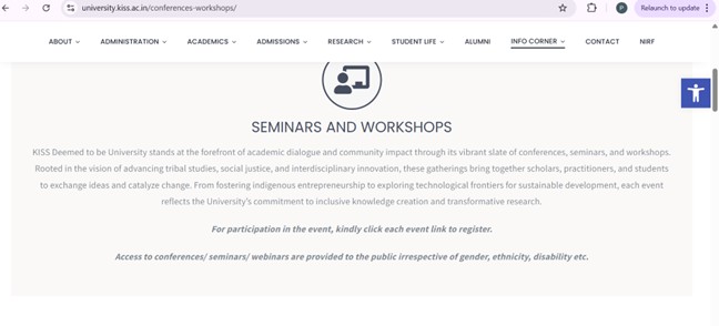 Screenshot from the web-page https://university.kiss.ac.in/conferences-workshops/