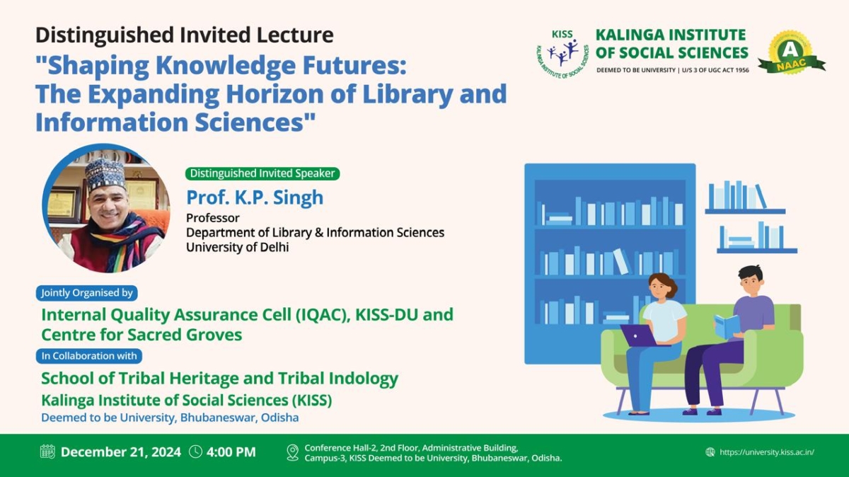 KISS Deemed to be University (KISS-DU), Bhubaneswar, hosted a thought-provoking distinguished invited lecture titled “Shaping Knowledge Futures: The Expanding Horizon of Library and Information Science” on 21st December 2024. This lecture was jointly organized by the Centre for Sacred Groves and Internal Quality Assurance Cell (IQAC), KISS-DU in collaboration with the School of Tribal Heritage and Tribal Indology, KISS-DU. The event highlighted the expanding horizons of Library and Information Science with suitable and comprehensive interdisciplinary and multidisciplinary citations.